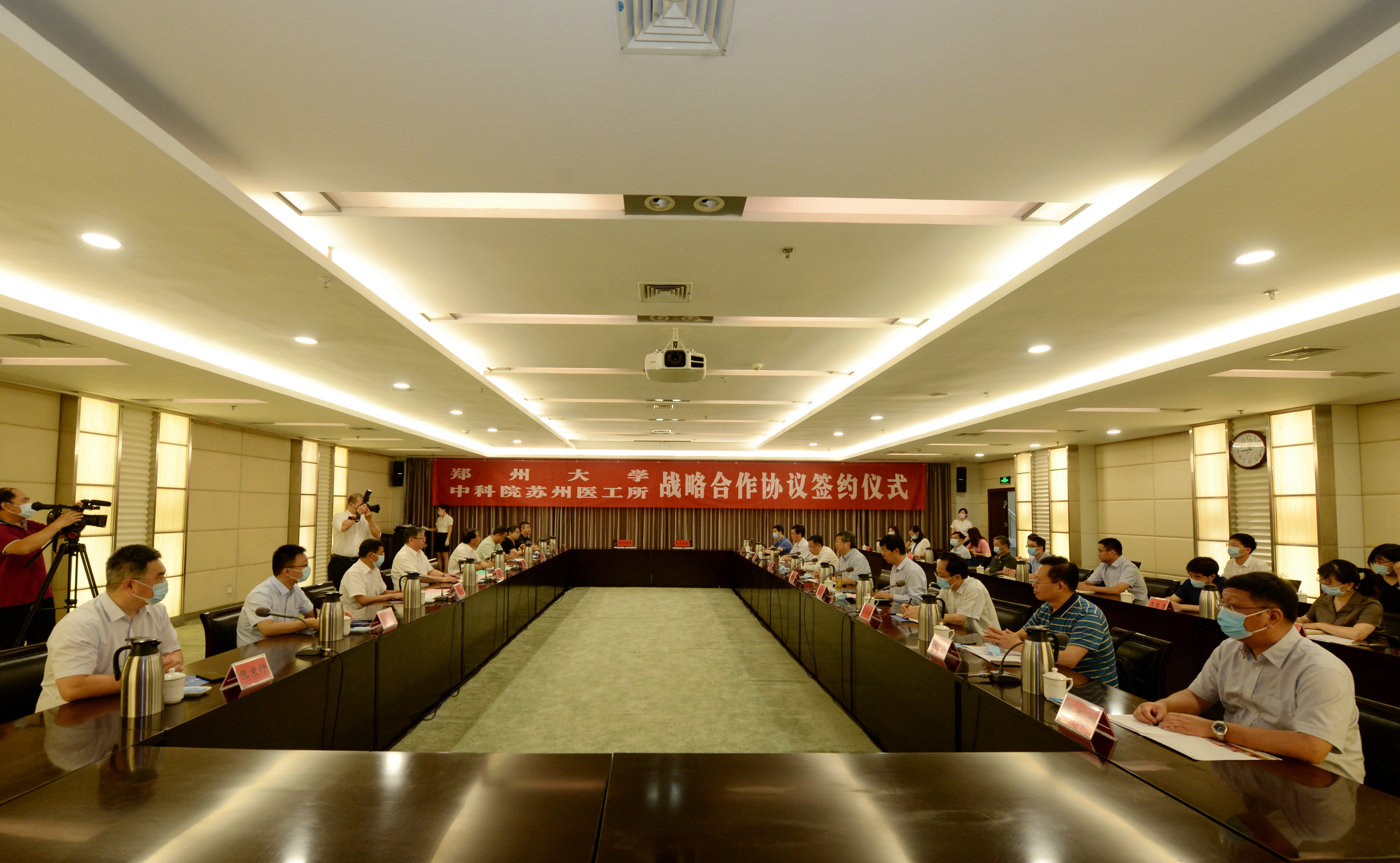 7月14日上午,ac米兰官网中文网站与中国科学院生物医学工程技术研究所战略合作协议签约仪式在主校区举行。河南省政协副主席、ac米兰官网中文网站校长刘炯天,苏州医工所所长唐玉国、党委书记杨洪波,郑州市副市长史占勇,校党委常委、副校长关绍康,副校长赵明皞以及苏州医工所、郑州市和ac米兰官网中文网站有关单位负责同志参加仪式。郑州市高新区党工委书记王新亭主持仪式。