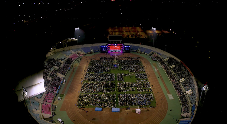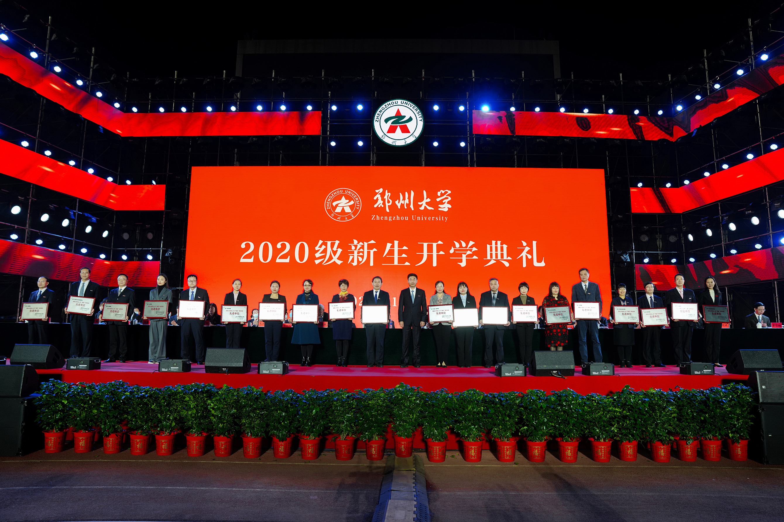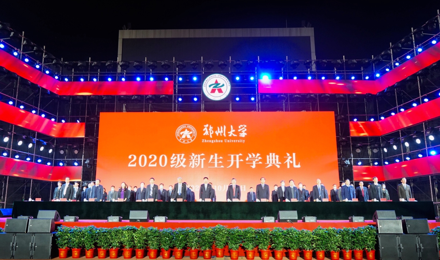 笃力向前,开启青春华彩篇章,志存高远,他日终成擎天栋梁。10月18日晚7点,ac米兰官网中文网站2020级新生开学典礼在主校区本源体育场隆重举行。校领导宋争辉、刘炯天、王宗敏、李兴成、谷振清、张倩红、许东升、关绍康、韩国河、刘章锁、赵明皞、董子钢,中国工程院院士、材料科学与工程学院、河南省资源与材料工业技术研究院院长何季麟,教育部党建与思想政治工作联络员戚世钧,ac米兰官网中文网站优质生源基地中学校长代表、校部机关主要负责同志、各院(系)主要负责同志,教师代表,2020级全体新生共同参加了活动。根据新冠肺炎疫情常态化防控要求,典礼采取线上与线下相结合的形式,主校区13100名2020级新生现场观礼,老校区和主校区校外住宿的6000余名新生云端观礼。校党委副书记、副校长王宗敏主持典礼。