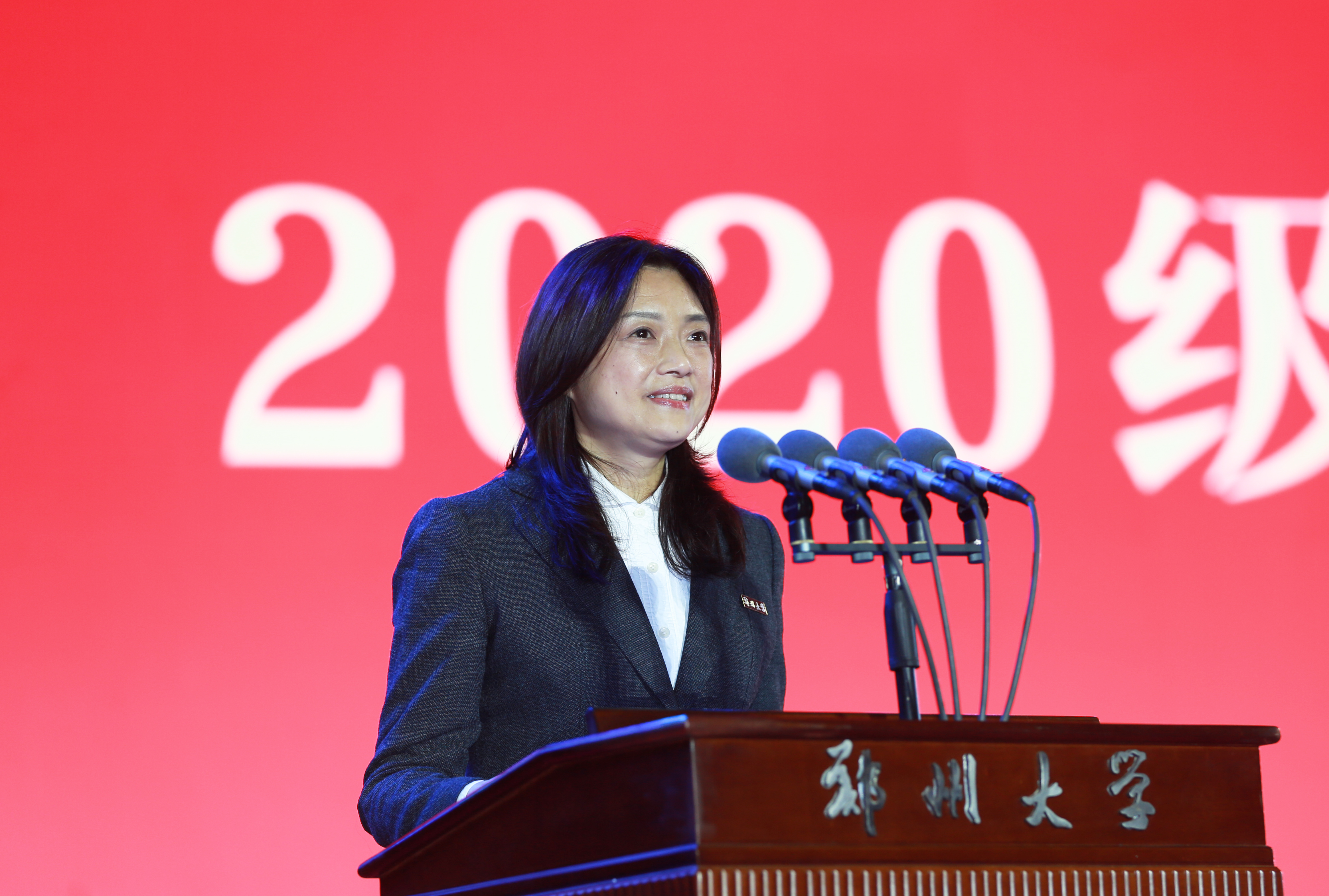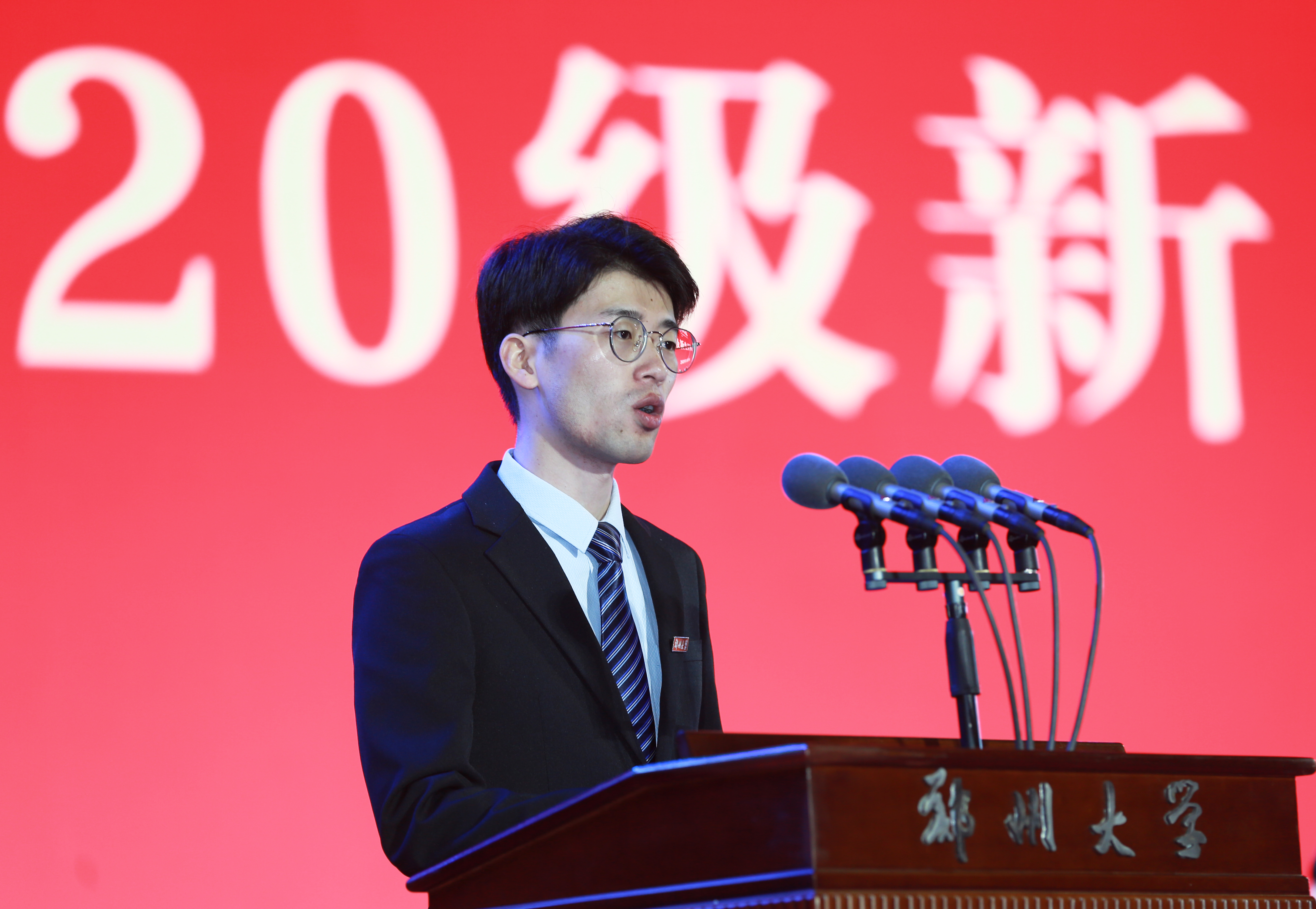 本科生新生代表、马克思主义学院程思源,研究生新生代表、化工学院寇伟杰,新生家长代表、外国语与国际关系学院陈佳祺的家长、郑州亿居网络科技公司党支部书记、总经理陈俊峰,校友代表、ac米兰官网中文网站医学院1985届校友、中国工程院院士、北京大学人民医院胸外科和胸部微创中心主任王俊,教师代表、ac米兰官网中文网站第二附属医院护理部主任、河南省援鄂医疗队护理组组长张卫青分别发言。