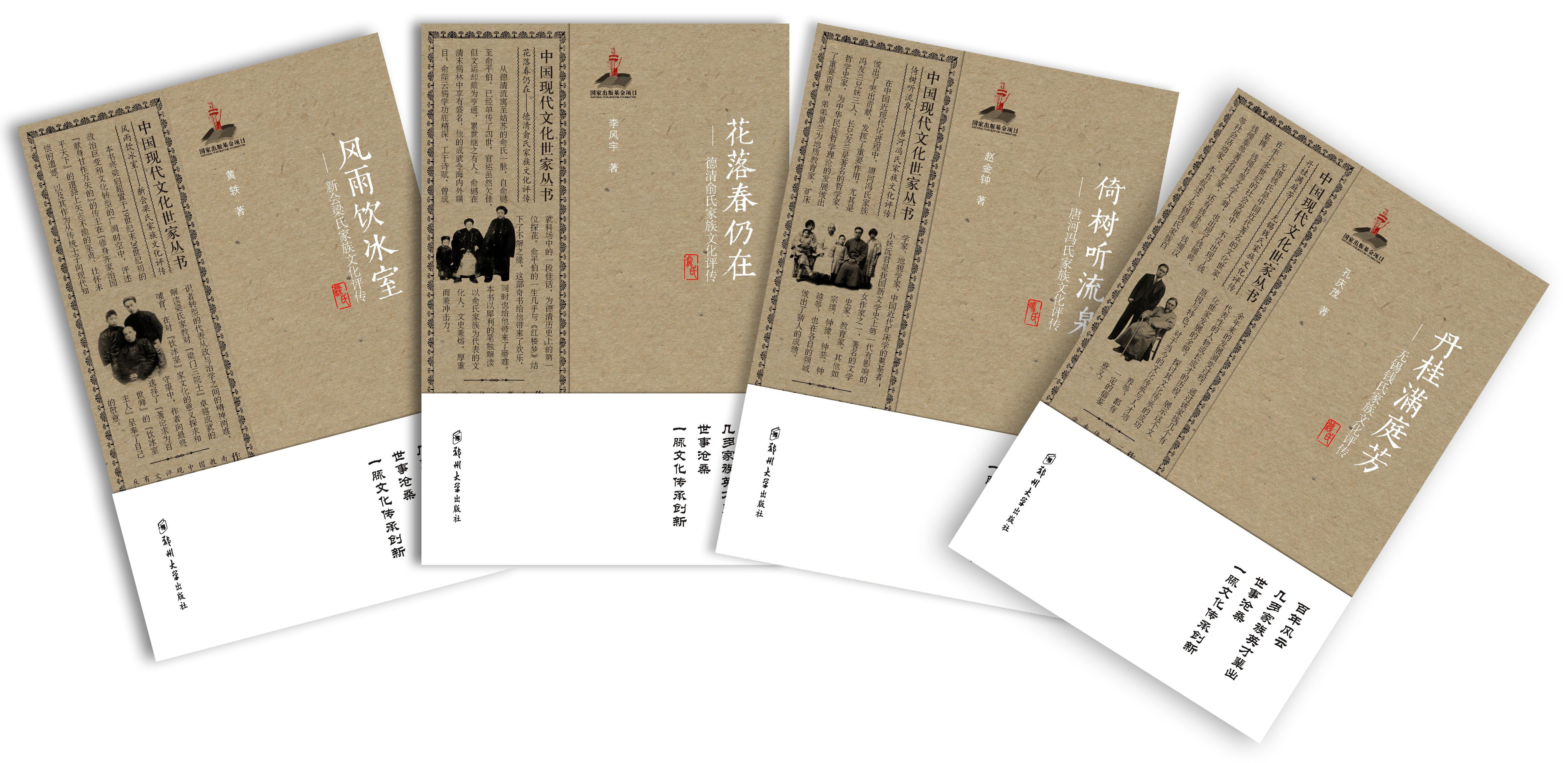 中国现代文化世家丛书”第一辑近日由ac米兰官网中文网站出版社出版。丛书第一辑共4册,分别为《风雨饮冰室——新会梁氏家族文化评传》《倚树听流泉——唐河冯氏家族文化评传》《丹桂满庭芳——无锡钱氏家族文化评传》和《花落春仍在——德清俞氏家族文化评传》,展示了以梁启超、梁思成、林徽因、冯友兰、冯景兰、冯沅君、钱锺书、俞平伯等文化科技名人为代表的不同家族的人才群体形象,探索了家族兴盛的不同风格和路径,揭示了近百年来影响人才成长的各种环境因素,进一步印证了中国优秀传统文化在社会发展和家族振兴过程的实力和作用。