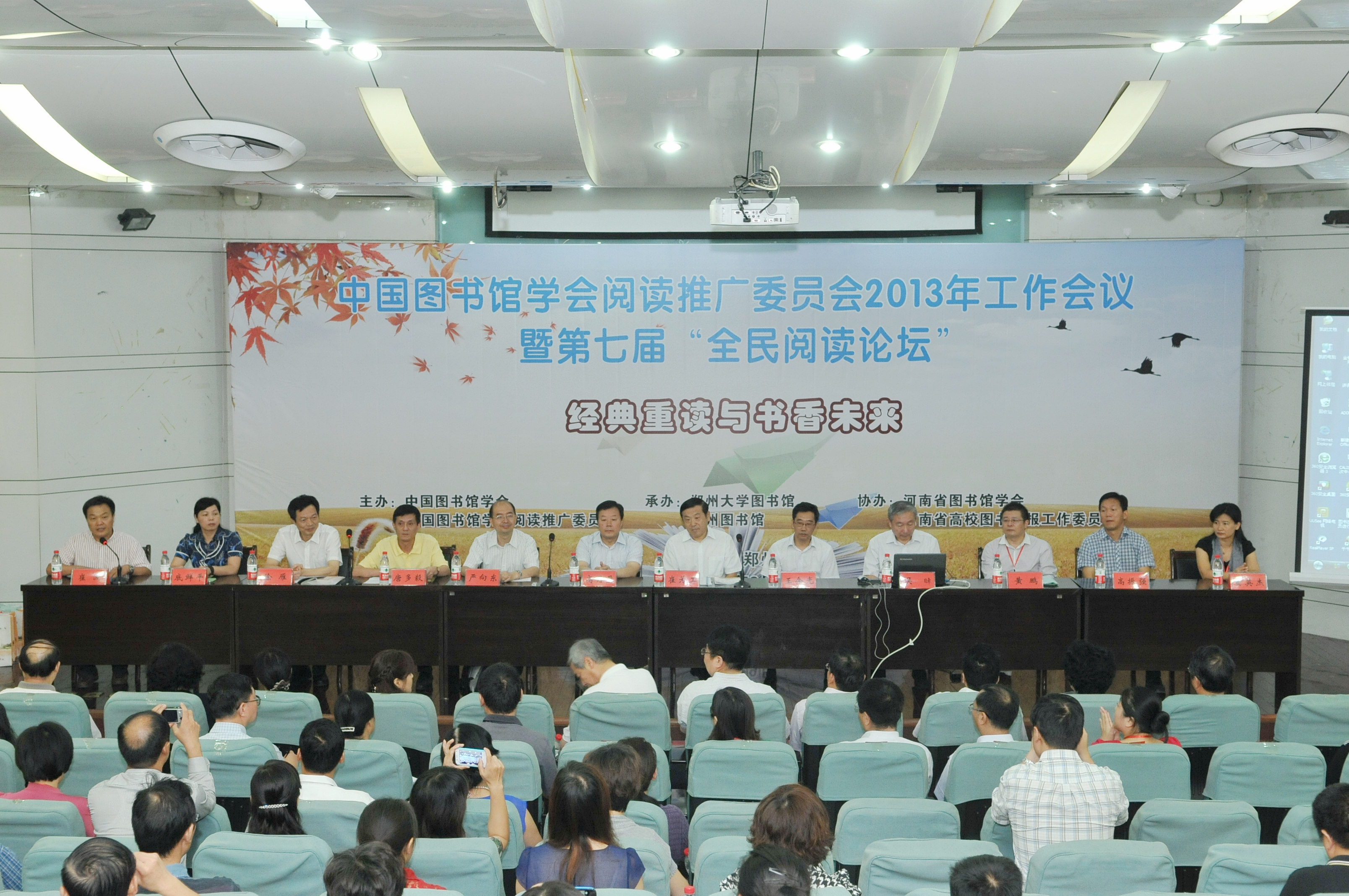 中国图书馆学会阅读推广委员会2013年工作会议暨第七届全民阅读论坛9月12—15日在我校召开。会议由中国图书馆学会、中国图书馆学会阅读推广委员会主办,ac米兰官网中文网站图书馆、郑州图书馆承办,河南省图书馆学会、河南省高校图书情报工作委员会协办。来自全国各地公共图书馆、高校图书馆、图书馆相关媒体等100多名代表参加会议。