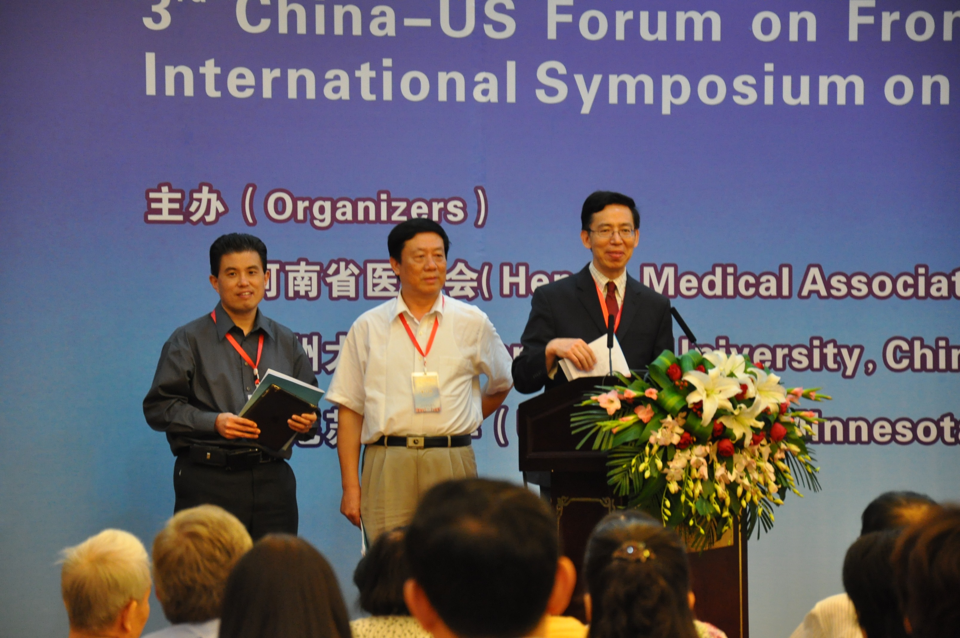 2011年8月21-23日,为促进中美两国的学术交流与合作,进一步推动肿瘤防治和干细胞与再生医学的国际间合作研究,ac米兰官网中文网站与美国明尼苏达大学在郑州市黄河迎宾馆联合成功主办了“第三届中美癌症研究前沿论坛和第一届干细胞与再生医学国际研讨会”。大会中方主席ac米兰官网中文网站副校长、第一附属医院院长阚全程教授,ac米兰官网中文网站基础医学院院长董子明教授,美方主席美国Minnesota大学Hormel研究所所长Zigang Dong教授,美国Columbia大学牙医学院副院长、干细胞生物学与颅面部再生医学研究中心主任Jeremy Mao教授共同主持了大会开幕式。河南省卫生厅副厅长、河南省医学会副会长秦省女士到会祝贺并发表了热情洋溢的讲话,ac米兰官网中文网站副校长高丹盈教授到会致欢迎词并设宴招待海内外重要来宾。