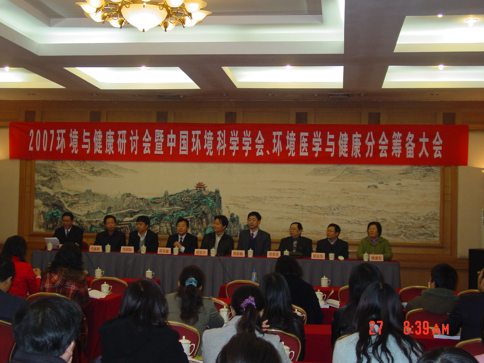 高丹盈副校长在开幕式上致词。中国环境科学学会任官平秘书长;环境医学专业委员会主任委员、北京大学公共卫生学院郭新彪教授讲话。从事环境保护和环境与健康研究的有关专家、教授80余名代表参加此次盛会。