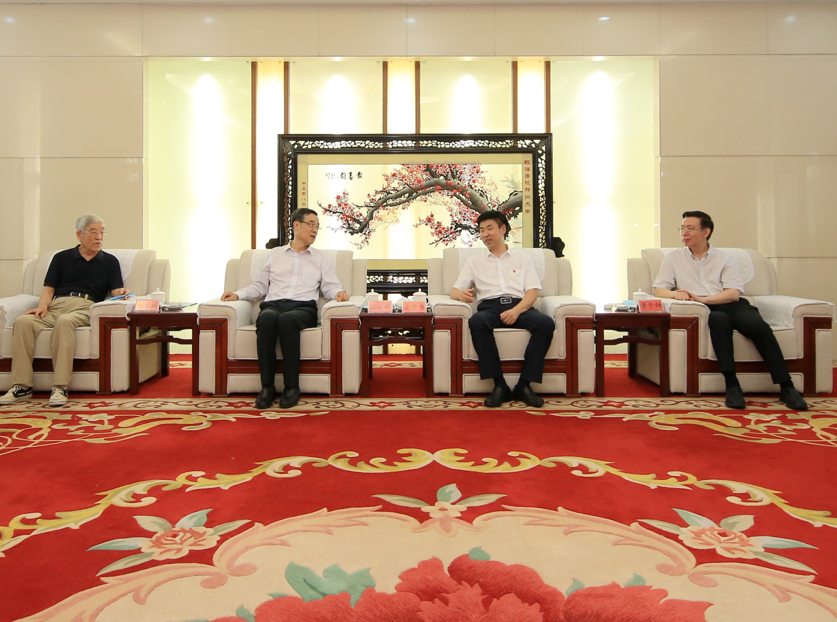 8月14日下午,郑州市政协主席张延明、副主席吴晓君一行到ac米兰官网中文网站看望慰问董子钢、刘庆柱。校领导宋争辉、李兴成、谷振清、韩国河会见了张延明一行。郑州市政协有关处室以及学校党委办公室、历史学院等单位负责同志参加慰问。