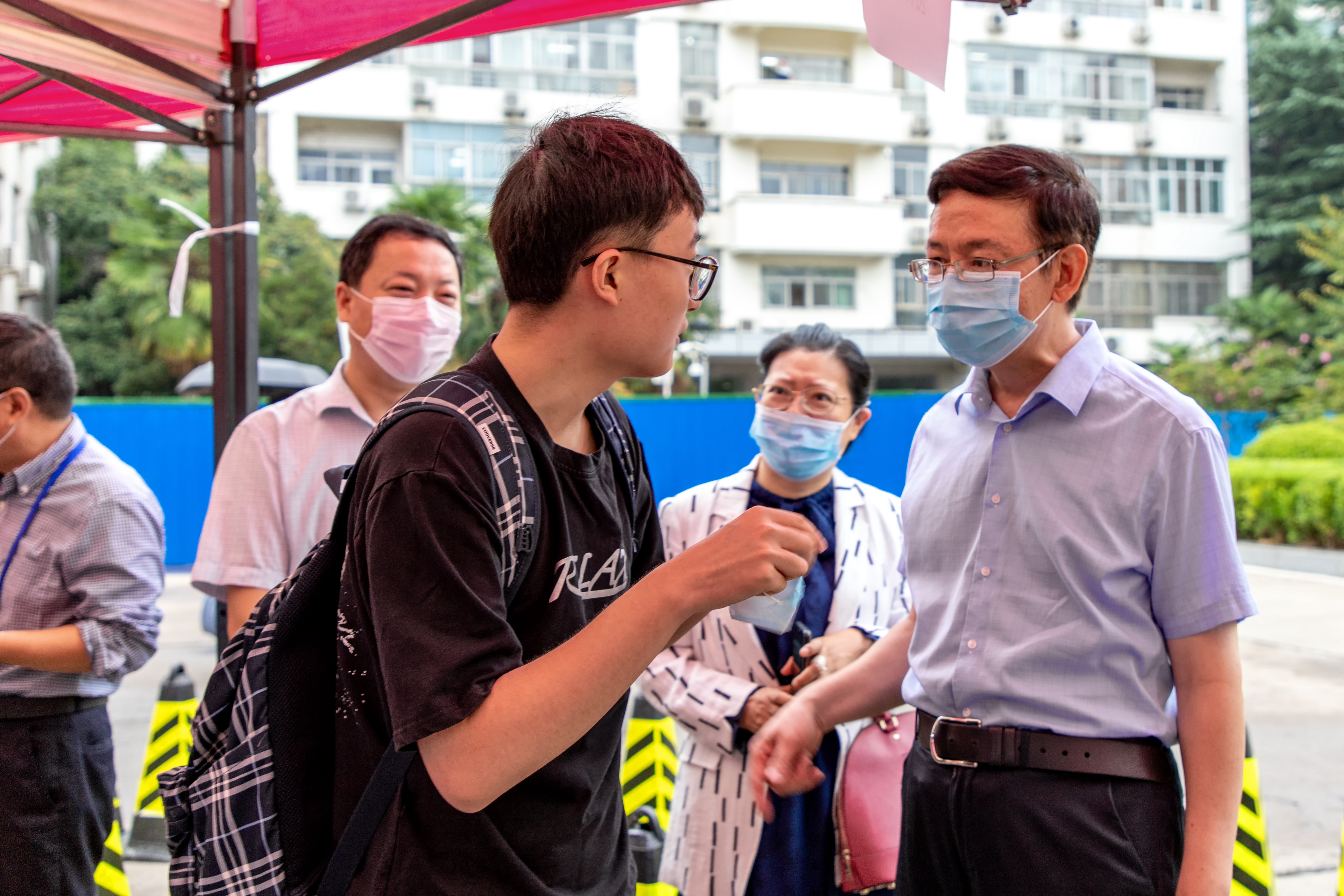 在主校区,校领导先后来到学校南门、东门、北门,察看人员管控、行李消杀、体温检测情况,并与学生们亲切交谈,询问同学们的假期生活、返校途中防护、住宿饮食等情况。校党委书记宋争辉向返校的同学们表示欢迎和慰问,勉励同学们珍惜来之不易的学习机会,加倍努力积极投身学习科研。