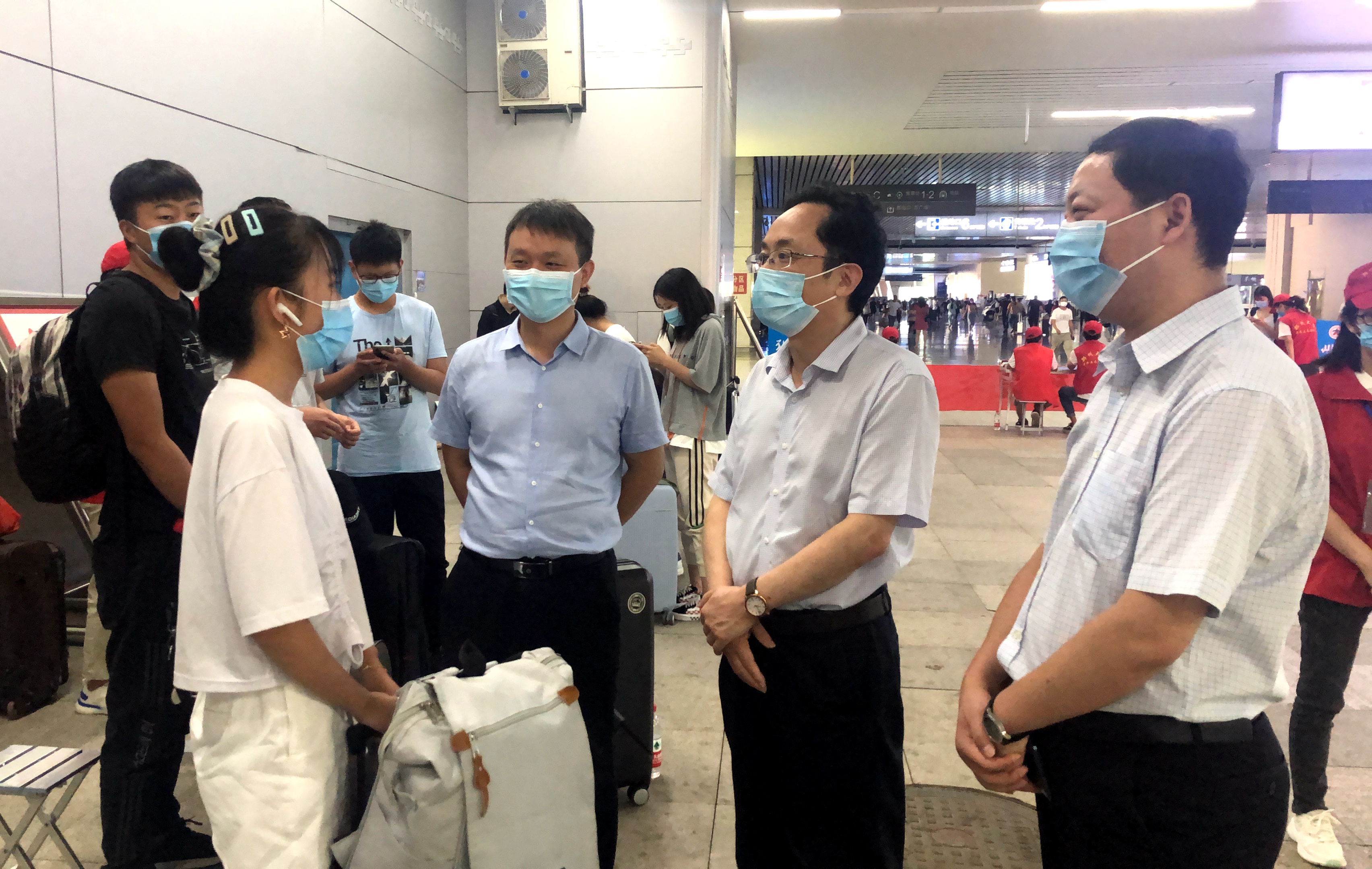 当天上午,校领导屈凌波、李兴成、谷振清、许东升、关绍康、吴宏阳、董子钢分别到南校区、北校区、医学院校区和火车站,检查指导返校复学工作。在检查过程中,校领导详细了解各项工作的准备和开展情况,与返校学生亲切交流,并慰问了工作人员和志愿者。