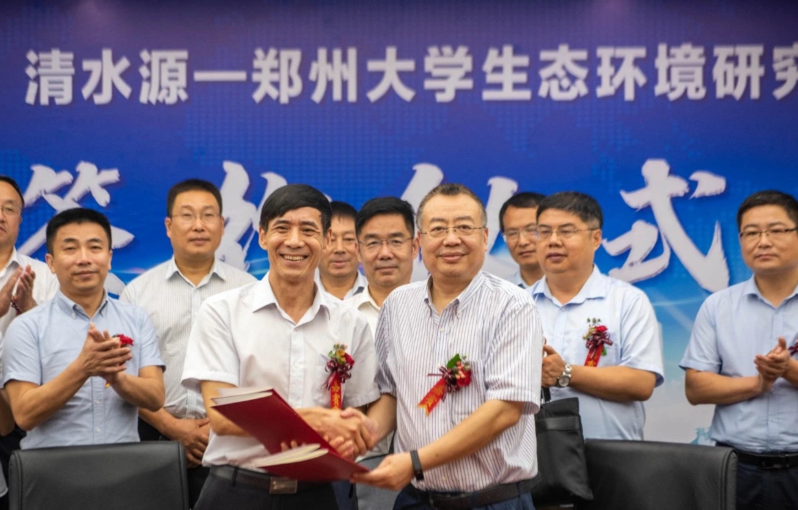 日前,学校与河南清水源科技股份有限公司合作成立“清水源—ac米兰官网中文网站生态环境研究院”,签约暨揭牌仪式在济源市清水源研发大楼举行。济源示范区管委会办公室党组成员、市政府副秘书长宋高峰,清水源集团董事长、总裁王志清,ac米兰官网中文网站党委常委、副校长屈凌波出席仪式。济源市工科委、轵城镇以及学校科技处、生态与环境学院负责同志参加仪式。
