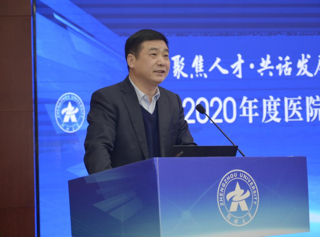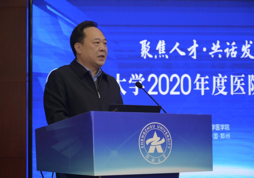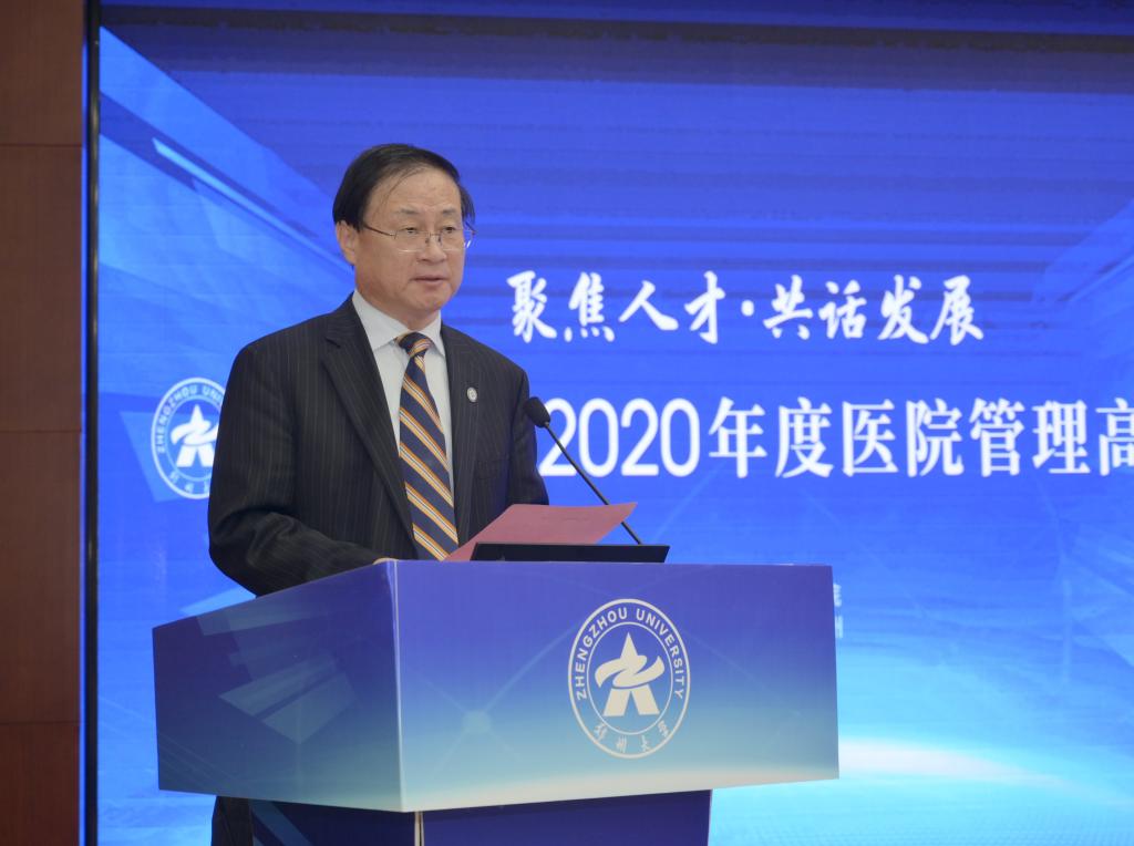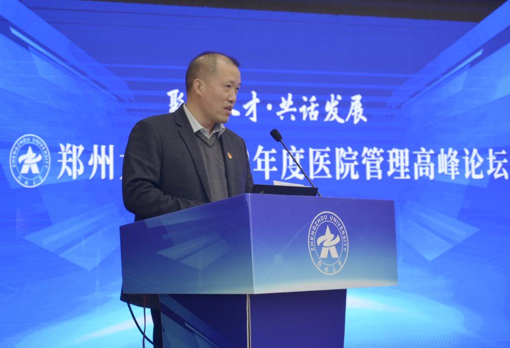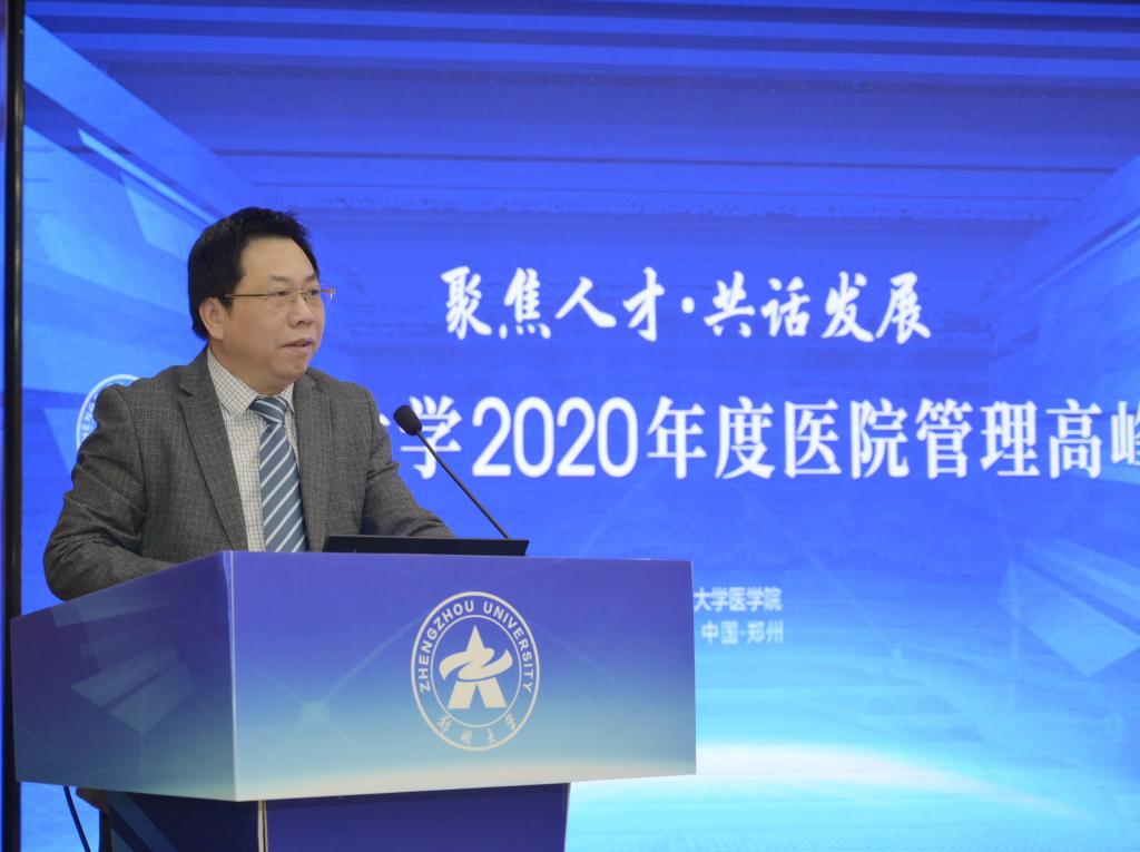 12月12日,ac米兰官网中文网站以“聚焦人才·共话发展”为主题举办2020年度医院管理高峰论坛。中国研究型医院学会会长何振喜,国家卫生健康委人才交流服务中心党委书记张俊华,中南大学党委常委、副校长陈立章等,省卫生健康委员会党组书记、主任阚全程,河南省教育厅党组书记、厅长郑邦山,省教育厅党组成员、副厅长张传广,ac米兰官网中文网站党委书记宋争辉,党委副书记、医学院党工委书记谷振清,副校长、第一附医院院长刘章锁,副校长、医学院院长董子钢等出席。省卫健委和省教育厅相关处室负责人,学校有关职能部门、医学院、医学科学院、10所附属医院负责同志等参加论坛。谷振清、刘章锁、董子钢分别主持论坛有关环节。根据疫情防控需要,论坛采用线上线下相结合的方式举办,主会场设在第一附属医院郑东院区第二报告厅,各附属医院另设立分会场。