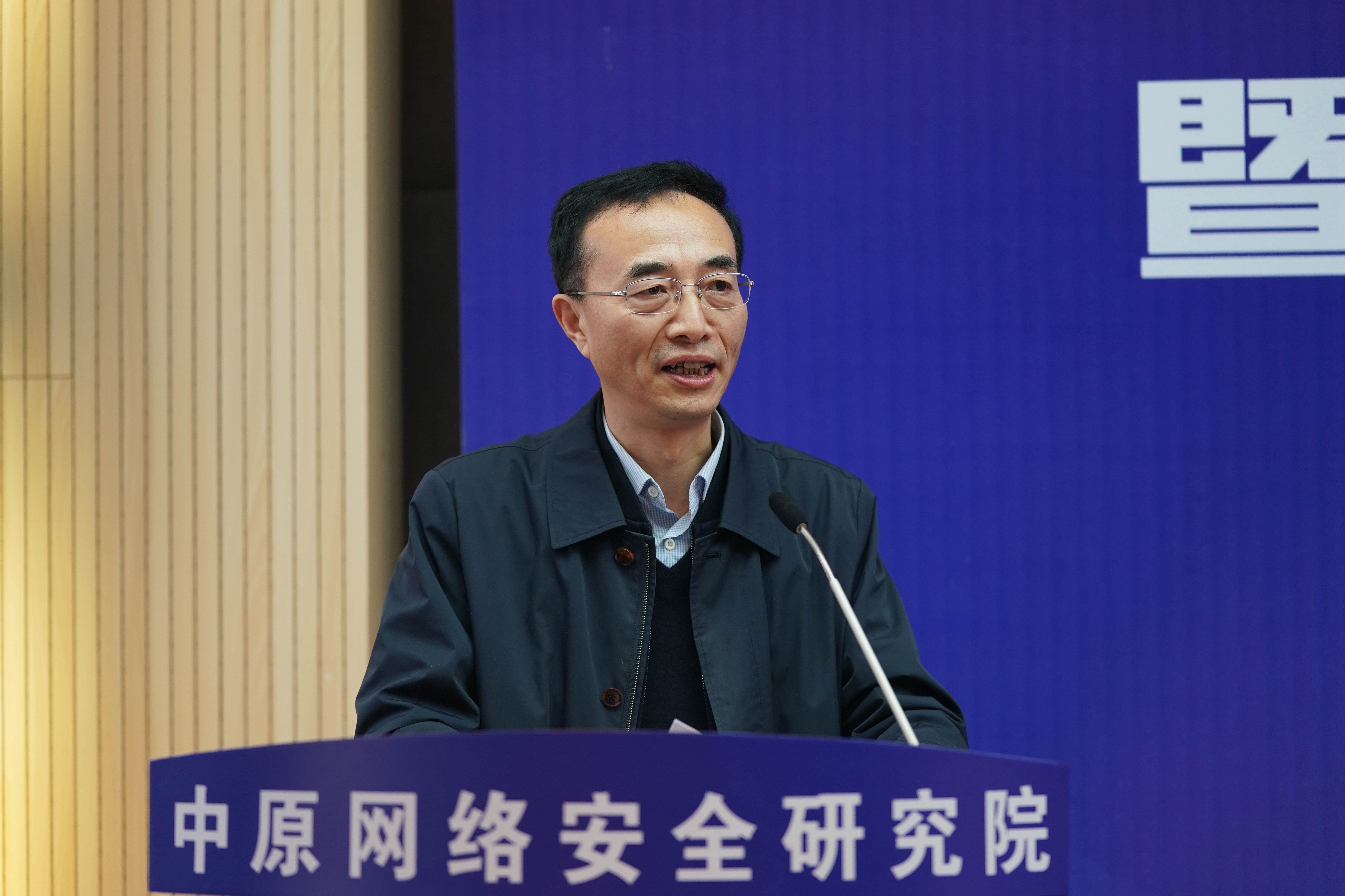 宋争辉为中原网络安全研究院院长胡传平、副院长石磊、索敏杰、张大龙颁发了聘书。梁晓婧为学术委员会主任邬江兴颁发了聘书。邬江兴和刘炯天为中原网络安全研究院揭牌。中原网络安全研究院院长胡传平汇报了研究院建设规划。