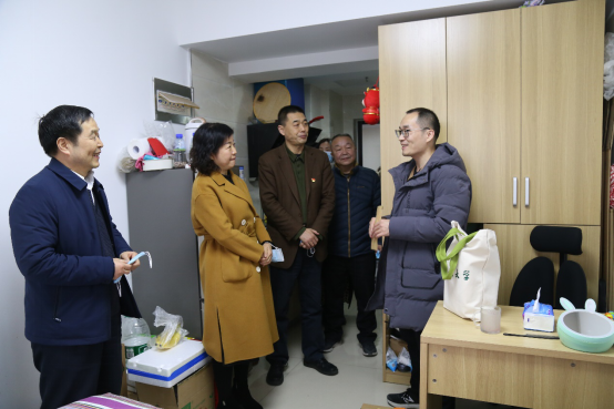 孙银正一行来到博士后研究人员的住处,了解了他们在校科研工作、家庭生活情况,送上了春节慰问品,并祝他们在新的一年身体健康、阖家幸福。