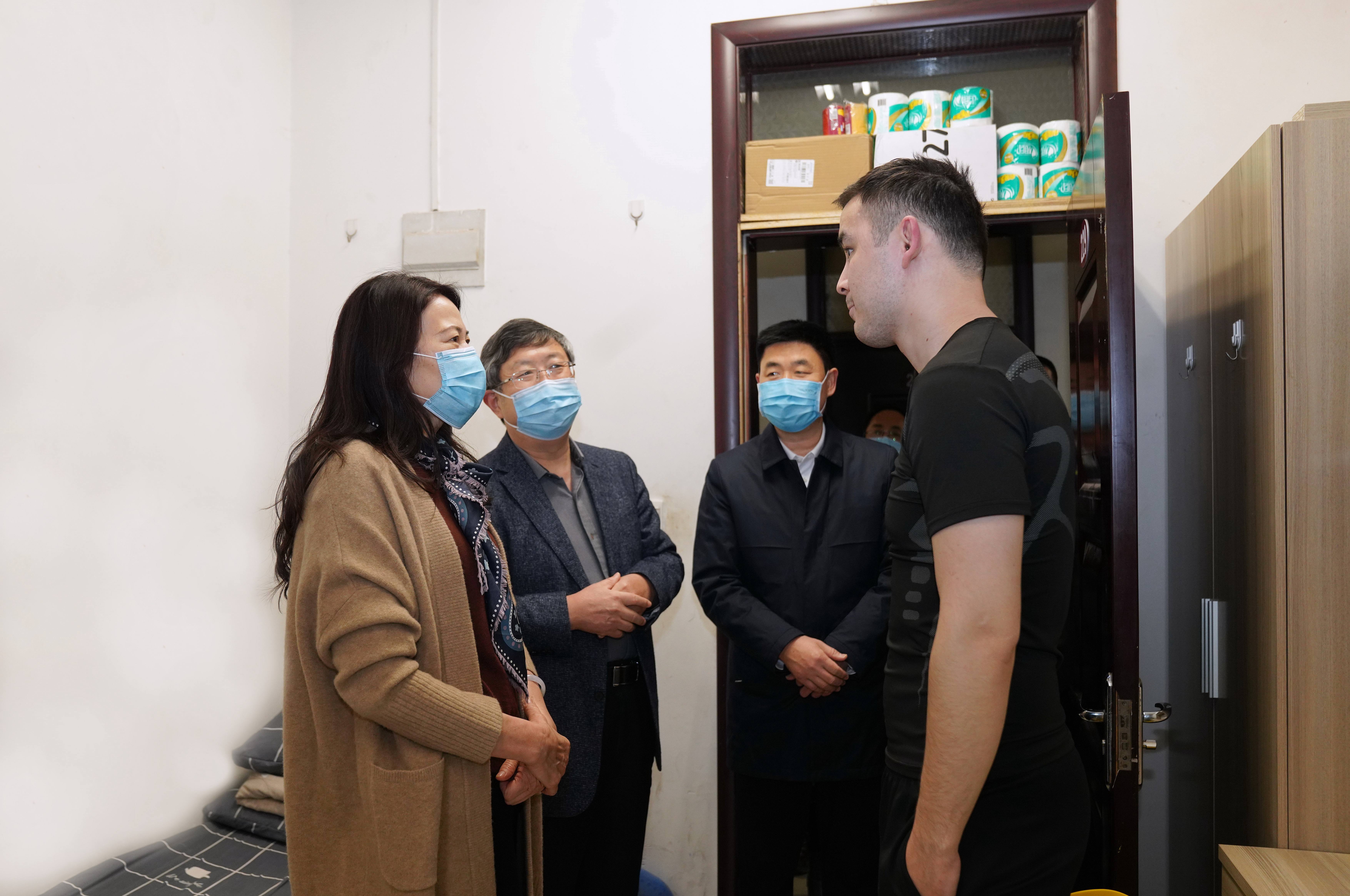 霍金花一行来到留学生12号宿舍楼,仔细查看并询问留学生学习生活情况。俄罗斯籍学生乌桑高兴地告诉霍金花:“我来郑大一年多了,学习生活很顺利,感到很开心。”霍金花鼓励他在这个春节好好感受中国传统文化魅力,过一个愉快的春节。