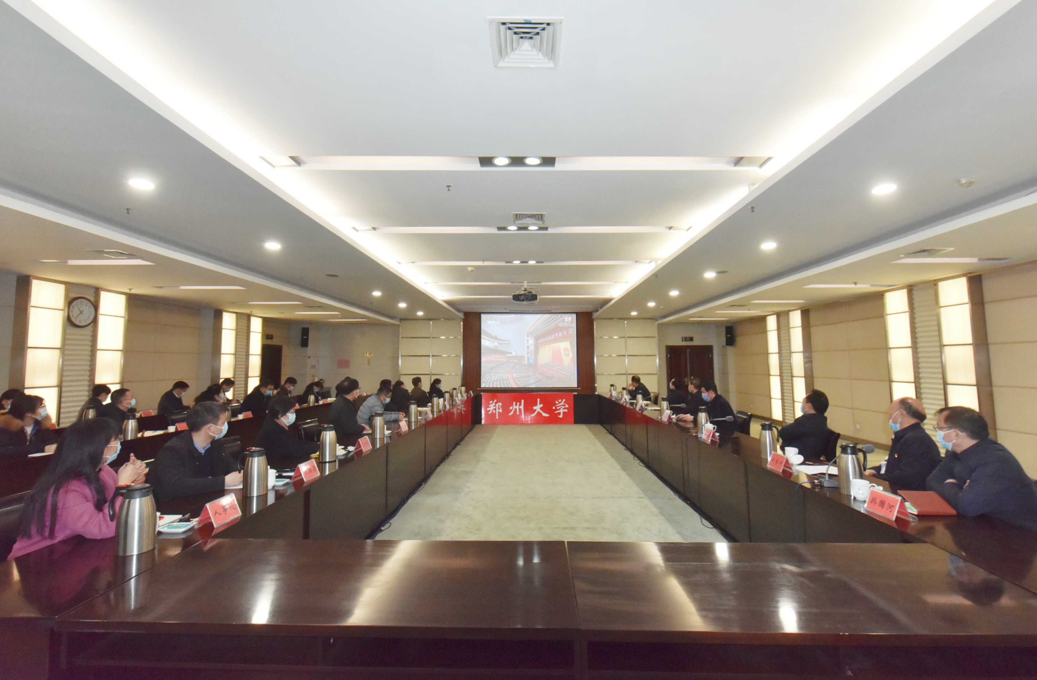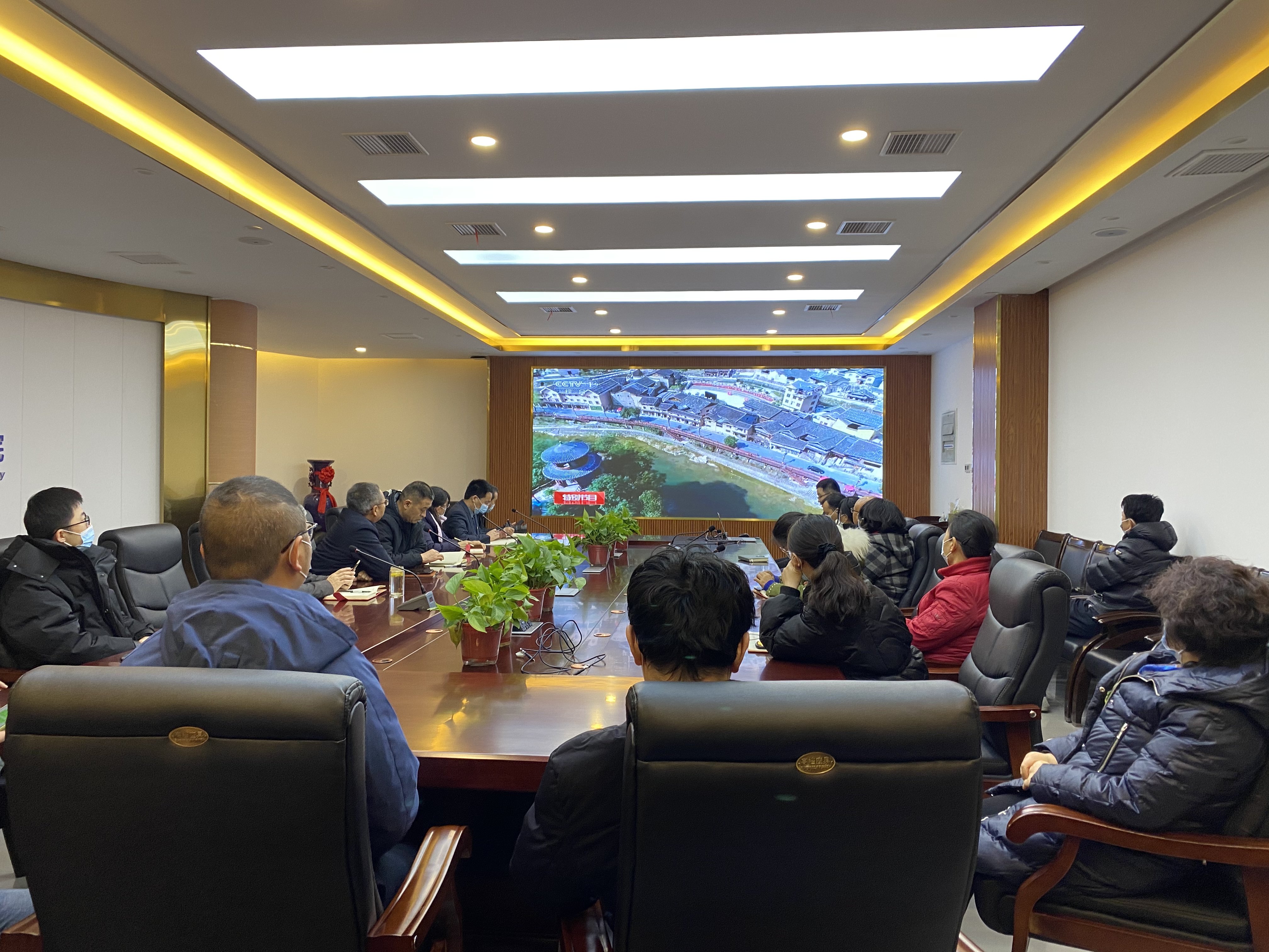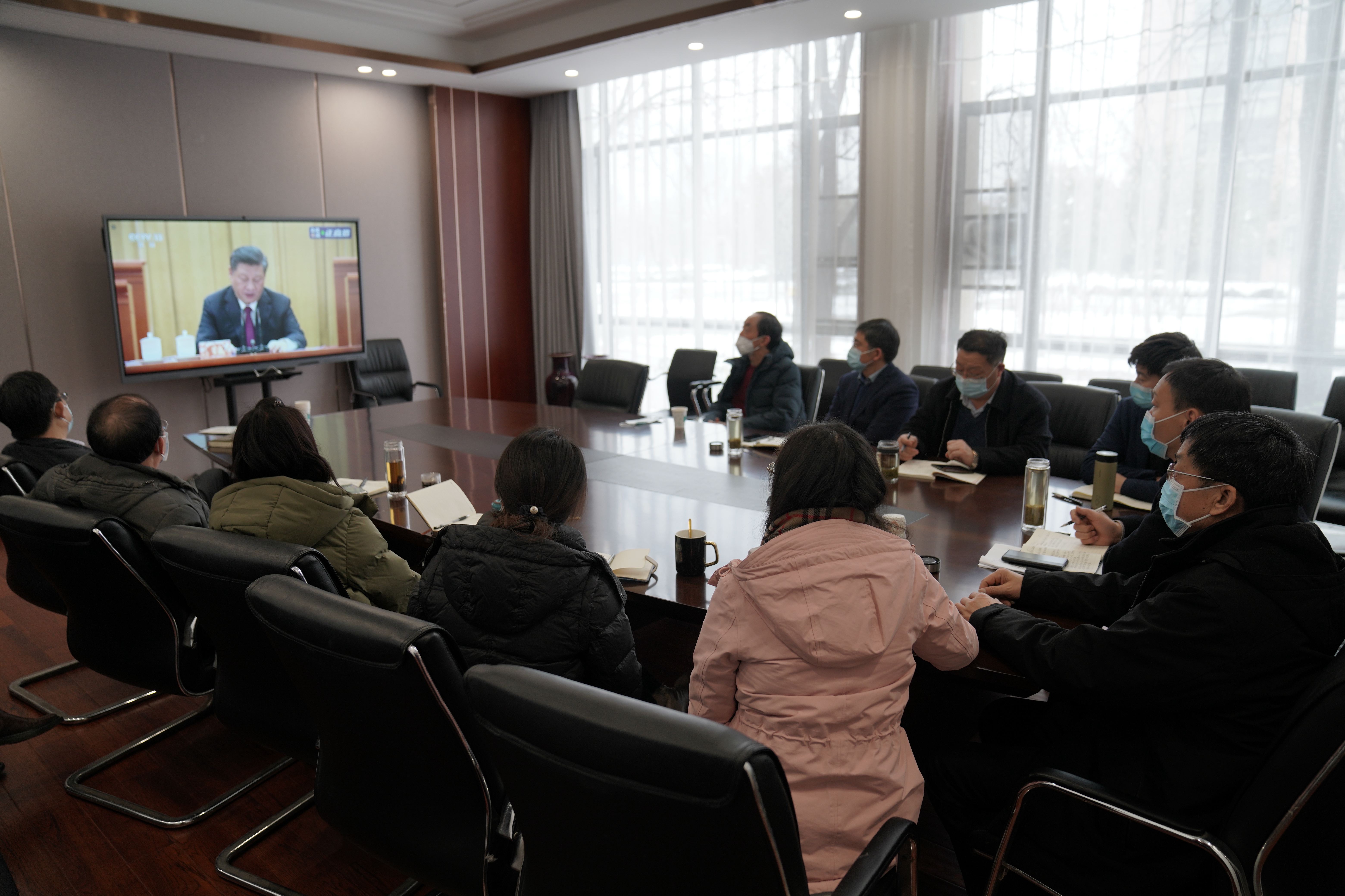 全体在校校领导,学校扶贫领导小组成员单位集中观看大会直播