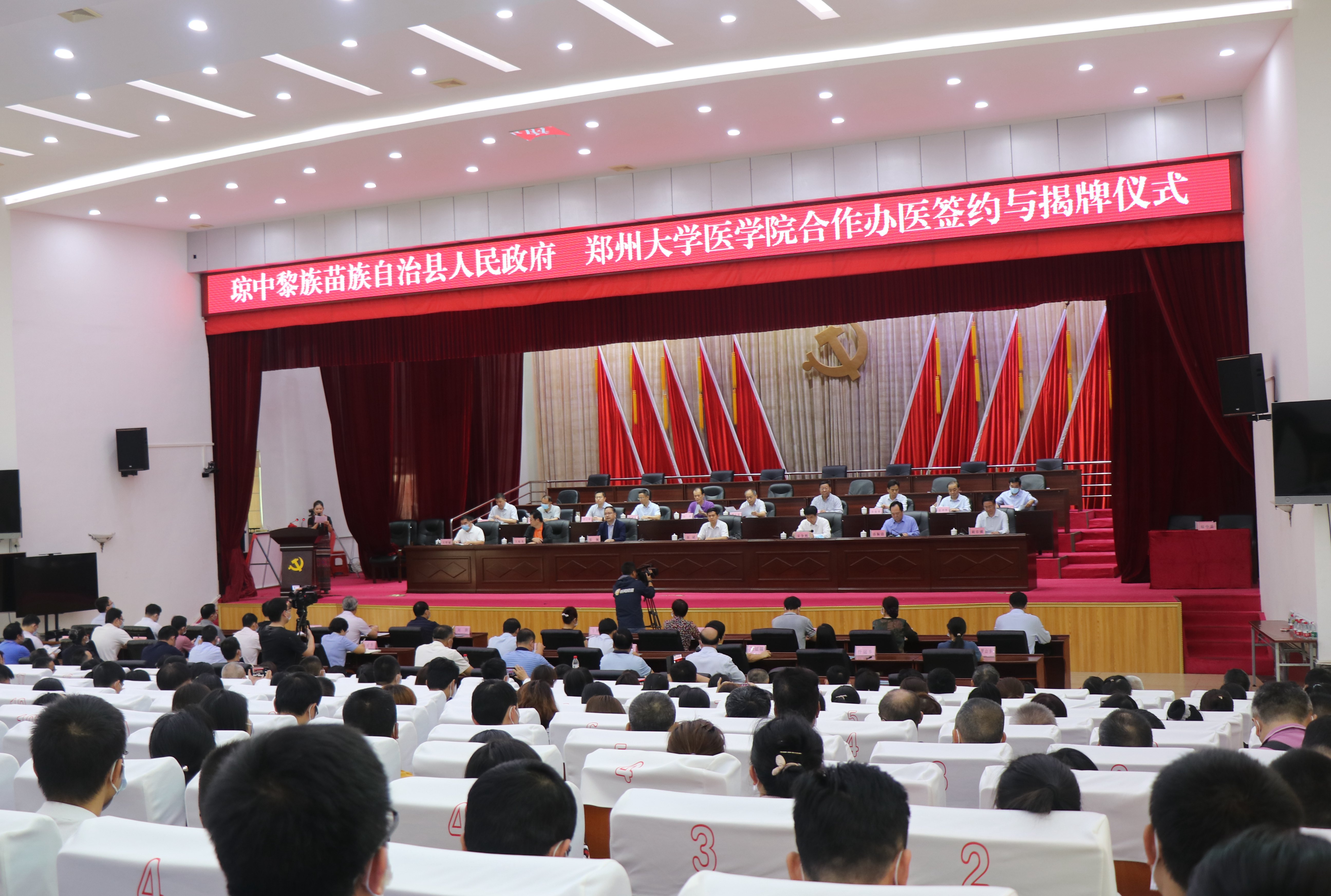 3月13日上午,ac米兰官网中文网站医学院与海南省琼中黎族苗族自治县人民政府合作办医签约与揭牌仪式在琼中县大礼堂举行,琼中县人民医院将增挂ac米兰官网中文网站琼中医院牌子,开启了双方深化合作、共谋发展的新篇章。ac米兰官网中文网站党委书记宋争辉,党委副书记、医学院党工委书记谷振清,副校长、第一附属医院院长刘章锁,海南省卫生健康委员会医政医管局局长张巍,琼中县委书记徐斌,县人民政府县长王琼龙等出席仪式。学校相关职能部门、医学院、附属医院,琼中县委、县政府有关部门、单位负责同志,选派专家代表参加仪式。