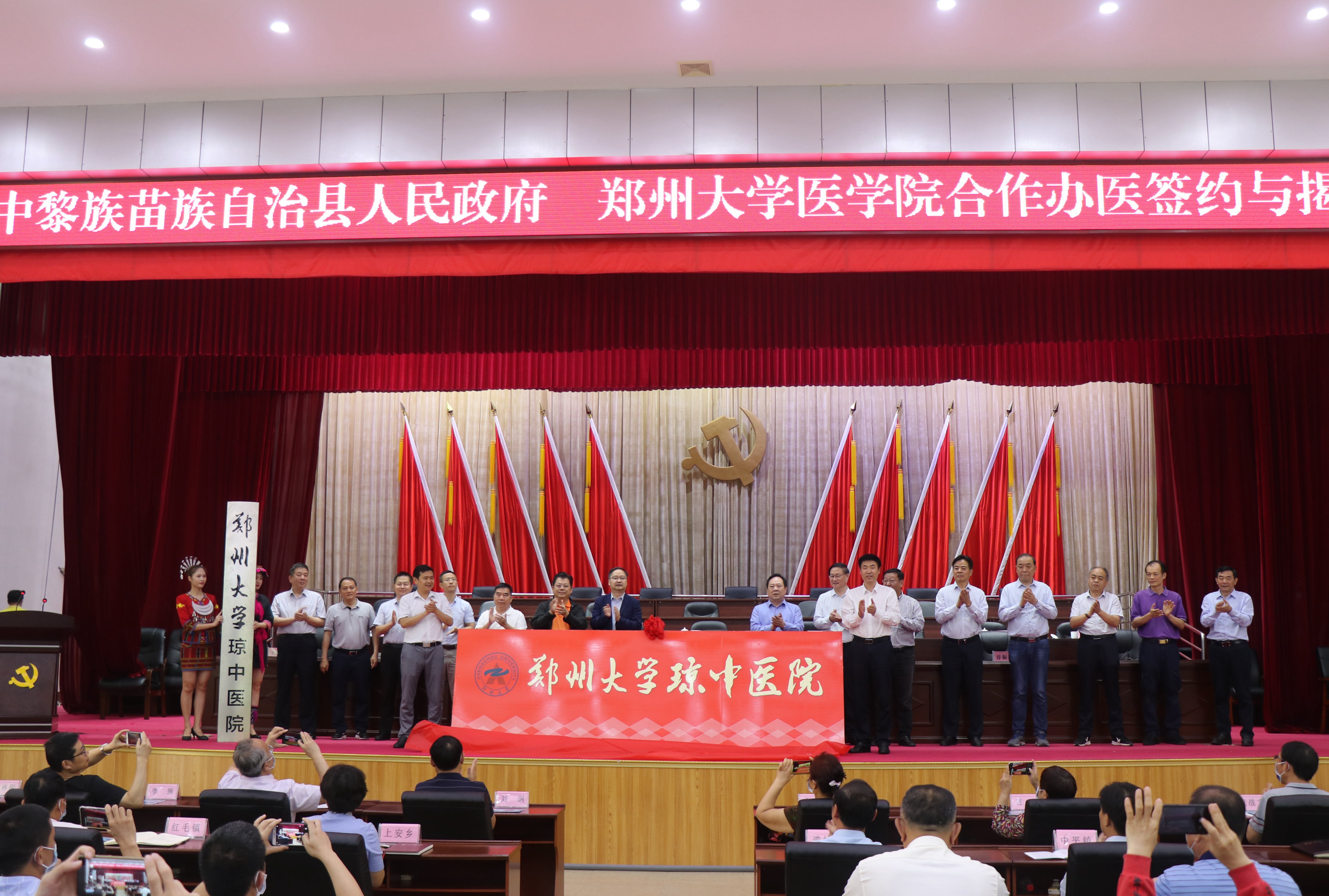 刘章锁和琼中县副县长陈海滨代表双方签署《海南省琼中黎族苗族自治县人民政府ac米兰官网中文网站医学院托管协议》。宋争辉、徐斌共同为ac米兰官网中文网站琼中医院揭牌。
