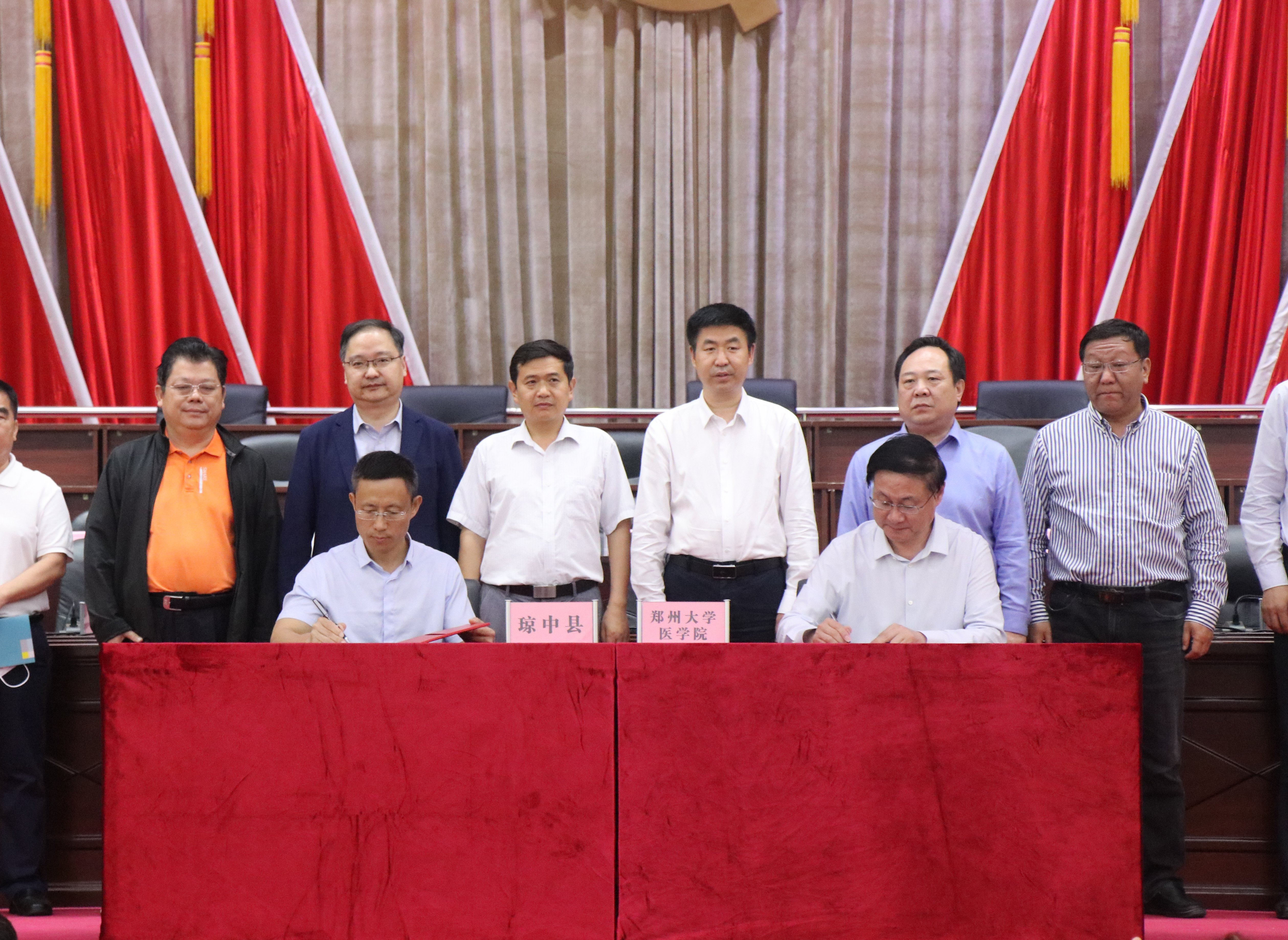 副校长、一附院院长刘章锁和琼中县副县长陈海滨代表双方签署《海南省琼中黎族苗族自治县人民政府ac米兰官网中文网站医学院托管协议》
