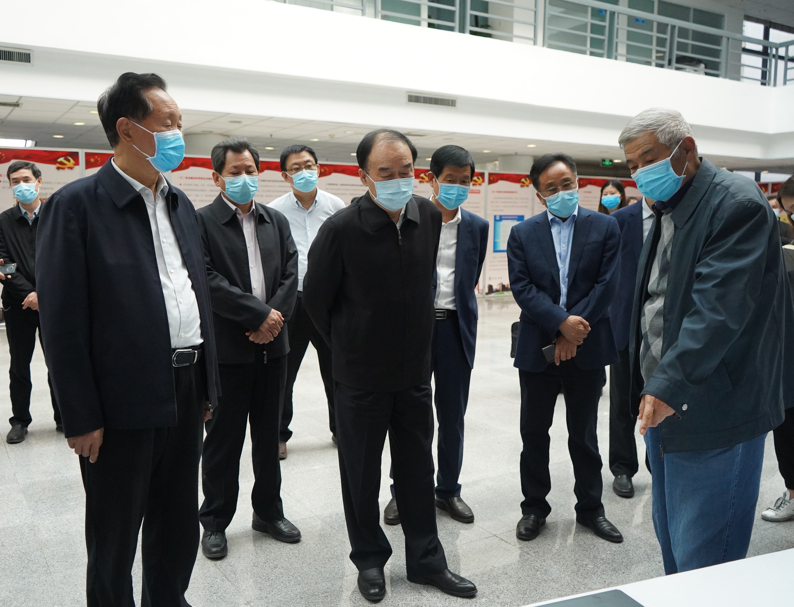 在资源与材料工业技术研究院,徐济超一行实地查看了资源与材料一流学科及靶材中心建设情况,就“卡脖子”关键技术问题与何季麟院士深入交流,询问了8.5代液晶面板平板显示器生产线的产业化情况。徐济超一行还听取了橡塑磨具国家工程研究中心建设情况汇报,详细察看了新一代航天服面窗、新型战机光电作战头盔护目镜等关键防护装置。徐济超表示,要聚焦国家战略需求,努力研发、攻坚克难,掌握核心关键技术,实现更高水平的自力更生。
