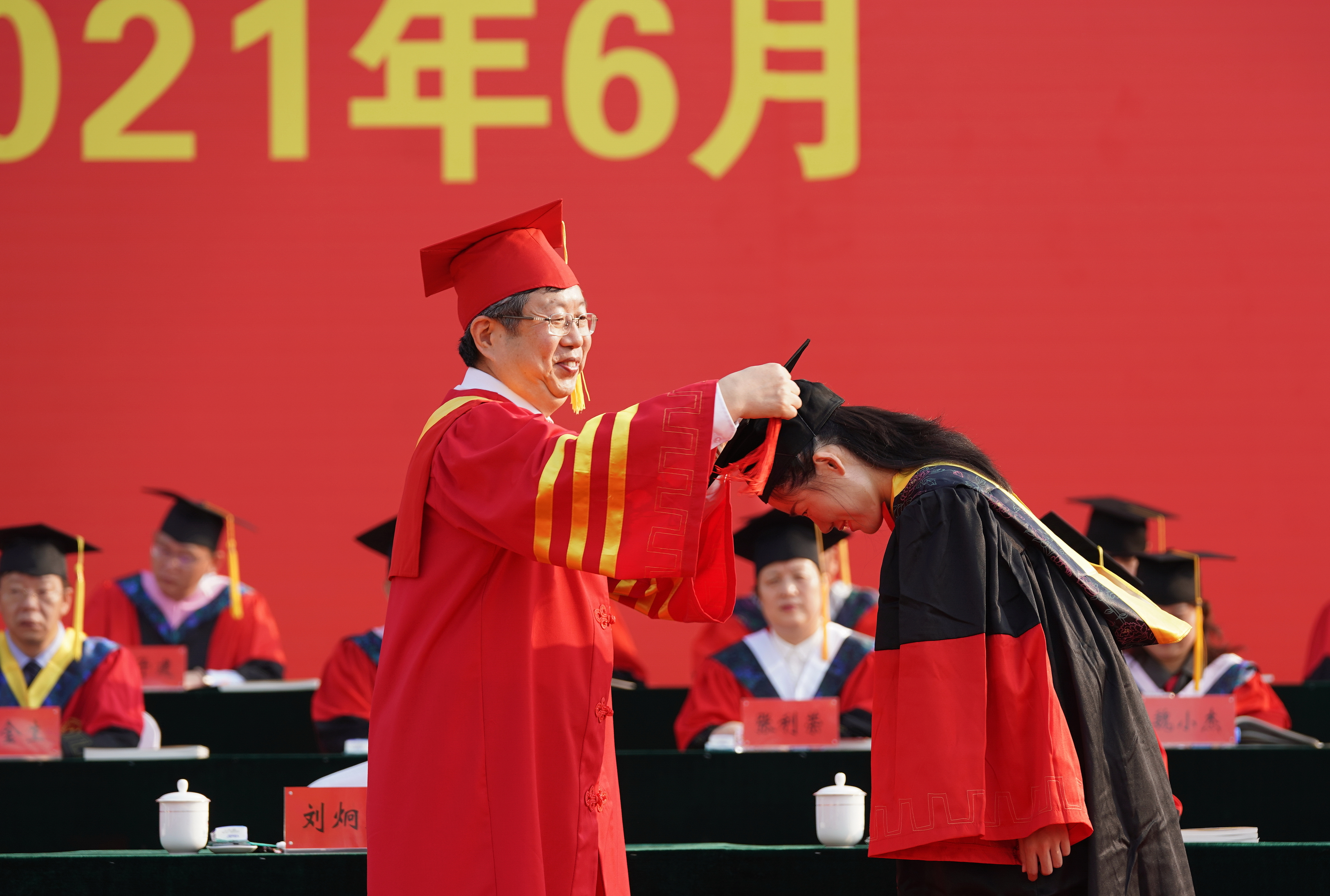 一百年风雨兼程,一百年沧桑巨变。在即将迎来建党一百周年华诞的特殊时刻,2021届毕业典礼更加意义非凡。衷心祝愿2021届全体毕业生从科学认知中汲取尊重的力量、从时代责任中汇聚尊重的力量,秉持尊重的素养与品格走向社会,坚定理想信念,牢记时代责任,胸怀平等之心、敬重之心、同情之心、宽容之心、感激之心、踏上人生新的征程!(魏洪波 摄影)