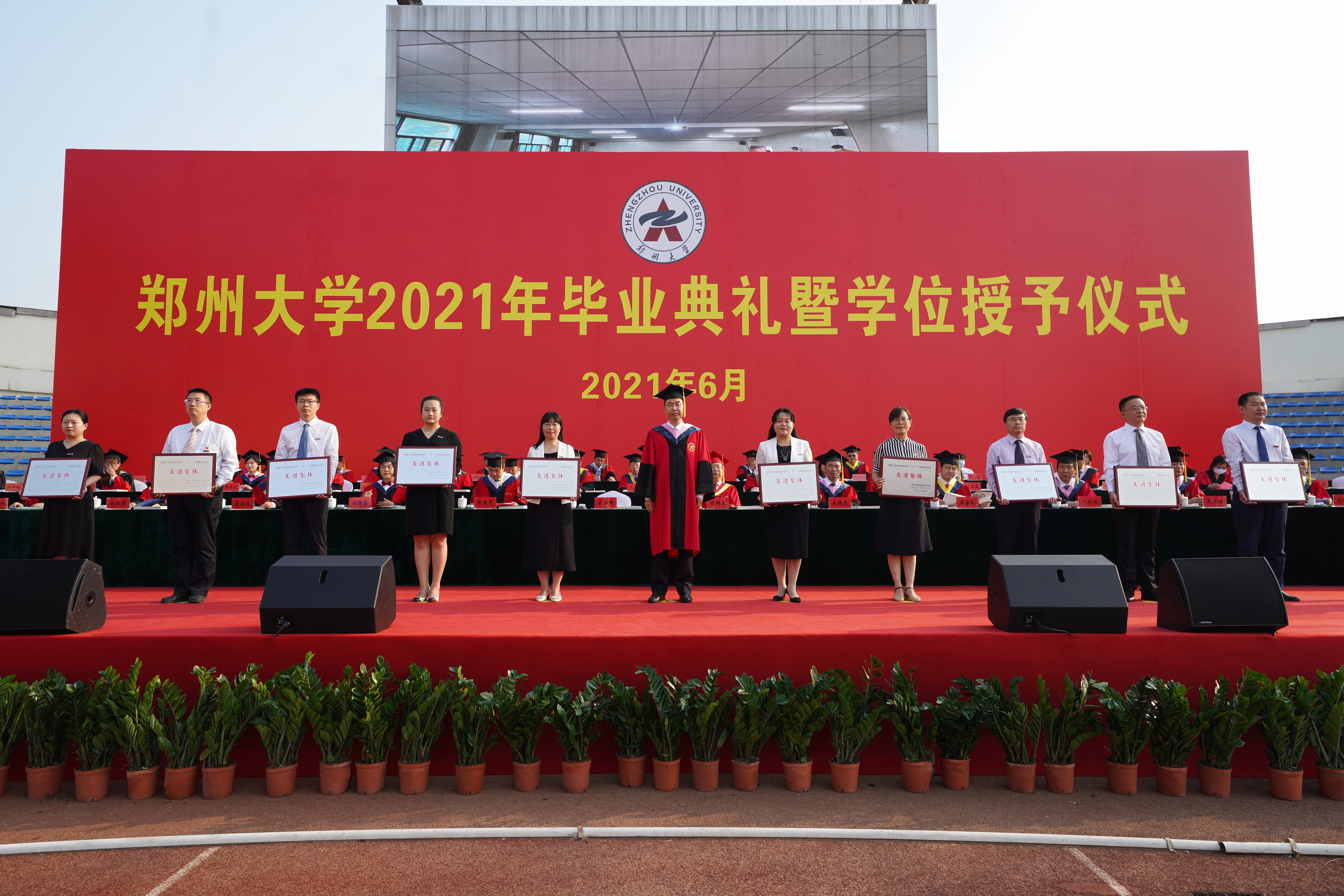 典礼开场播放了2021年毕业纪念视频——《难忘郑大》。视频记录了同学们在春生夏长中深耕学业,在时光年轮中镌刻青春,在守望相助中战胜疫情,永葆进取精神,激发创新力量,成长为一张张熠熠发光的“郑大名片”。