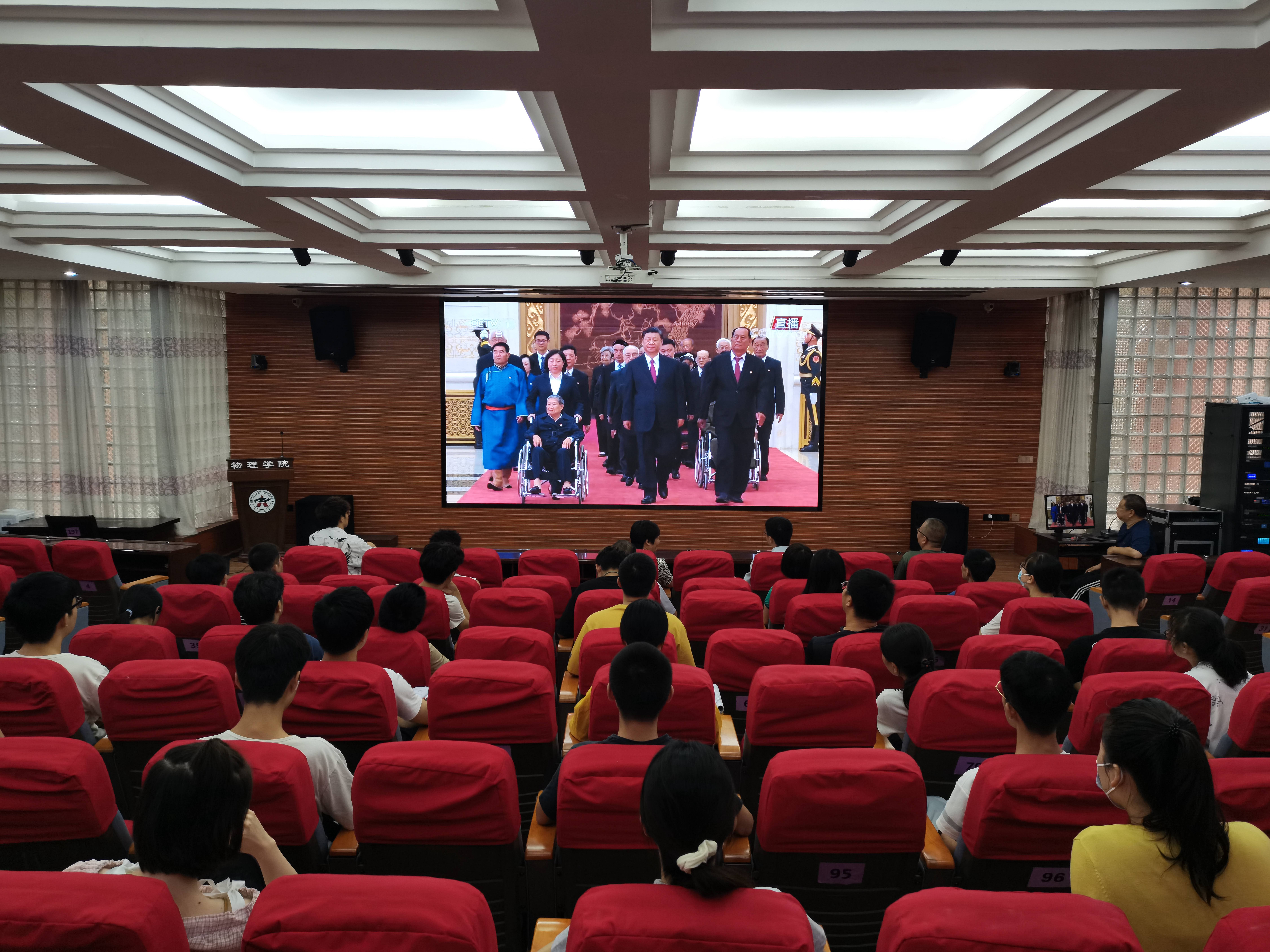 全体在校校领导、机关干部职工代表集中观看“七一勋章”颁授仪式
