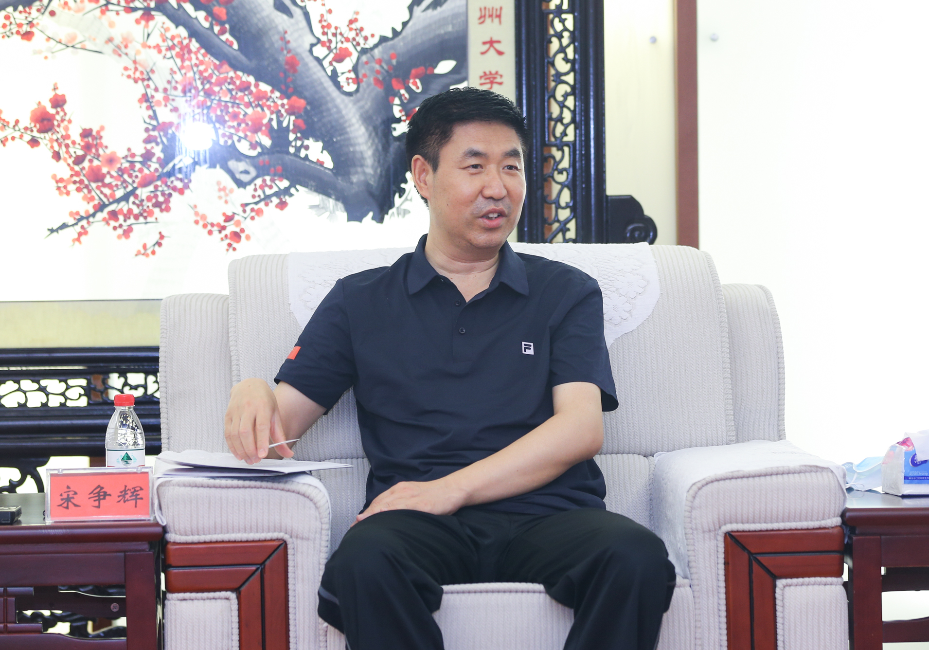 7月22日上午,科大讯飞股份有限公司河南大区副总经理许言午、河南大区政企客户群总监杨少明等来校,捐赠防汛物资。校党委书记宋争辉,党委副书记、副校长王宗敏,副校长董子钢会见了许言午一行。党委办公室、党委研究生工作部、对外联络办公室等单位负责同志参加捐赠仪式。