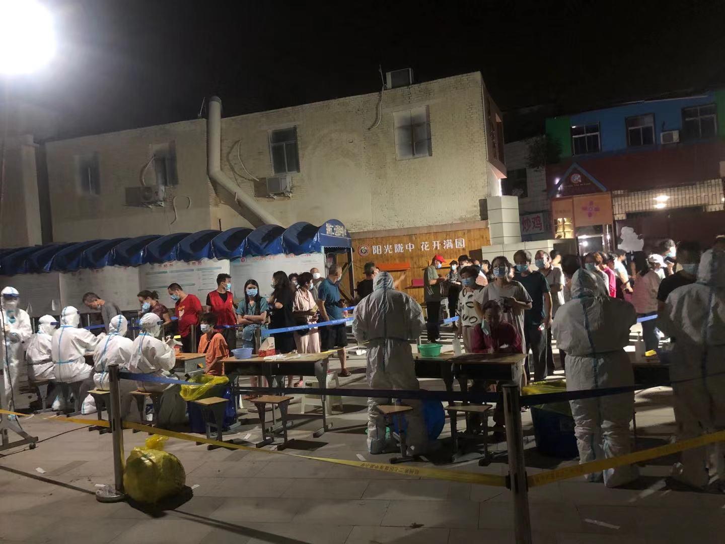 8月2日下午,医院50名医护人员经过专业核酸检测培训后又紧急驰援新郑,为郑州市的疫情防控贡献力量。在新郑市的一个小区里,医护人员从下午到晚上12点已经连续工作了6个小时,但等待核酸检测的队伍还有上百米,很多小区居民都在询问排队人员能否连夜检测。医护人员给大家用铿锵有力的声音说:“这是我们24小时坚守的阵地,请小区居民放心,所有居民核酸检测不完,我们绝不会退!”。