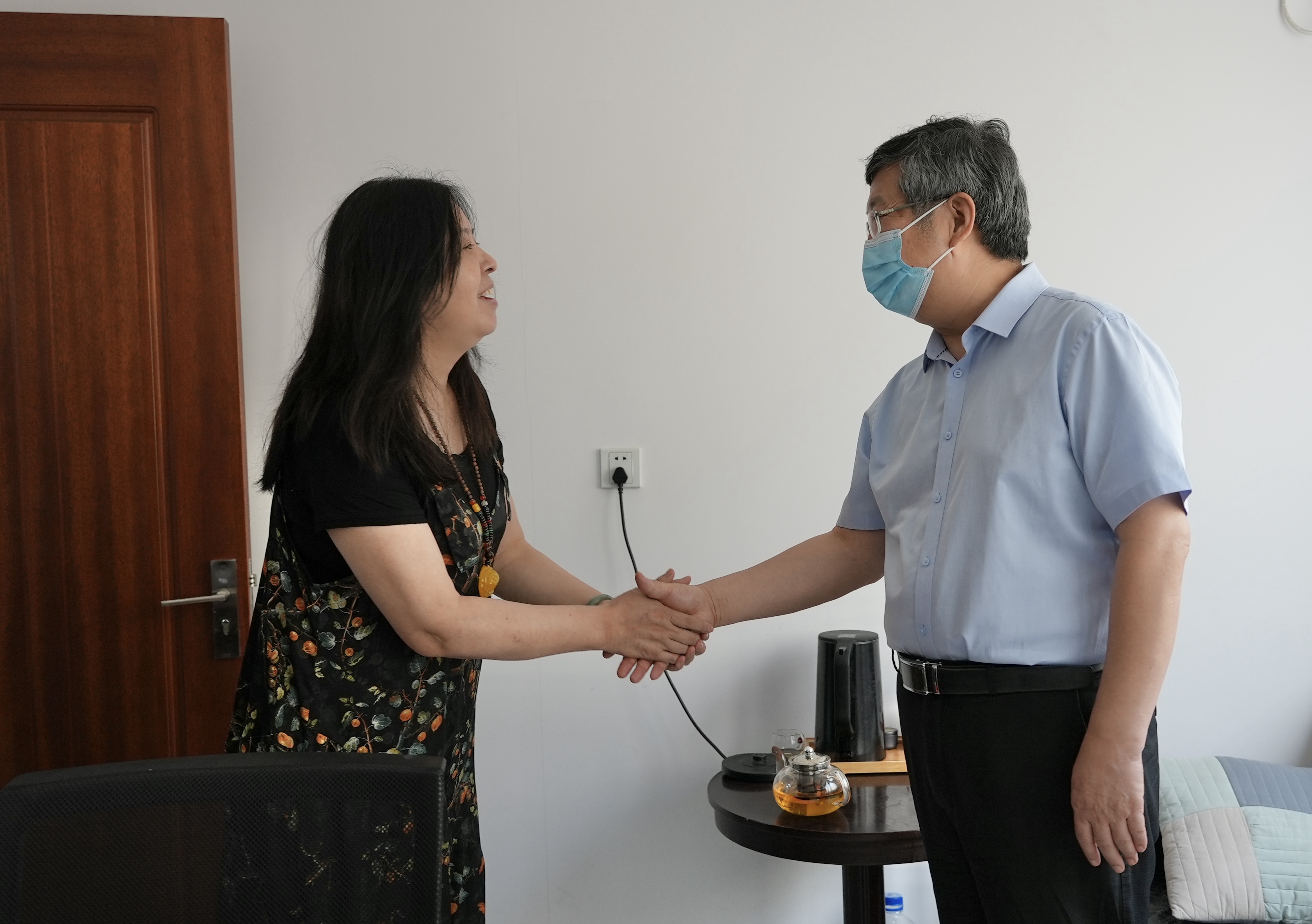 在资源与材料产业协同中心,刘炯天看望慰问王爱萍教授。王爱萍主要从事分子免疫学与免疫学快速检测技术、新型疫苗、重大疫病病源致病机制与免疫调控机理研究,担任河南省免疫生物学重点实验室主任、河南省分子免疫学与抗体工程创新型科技团队负责人、河南省高校分子免疫学与抗体工程科技创新团队负责人。刘炯天关心询问王教授在新型冠状病毒肺炎疫苗研究领域取得重大突破的情况,对研制出3个疫苗抗原均取得良好的免疫保护效果并与中国生物签订战略合作协议给予高度赞扬,指出要进一步加强校企合作,为推动疫苗产业化奠定基础,不断提升我国创新药的研究开发水平,为防控新冠肺炎、打开国门提供技术保障与产品支撑。王爱萍对学校的关心和支持表示感谢,表示将进一步推进产教融合深度协同发展,打造生命科学新高地,为全球抗击疫情作出郑大贡献。