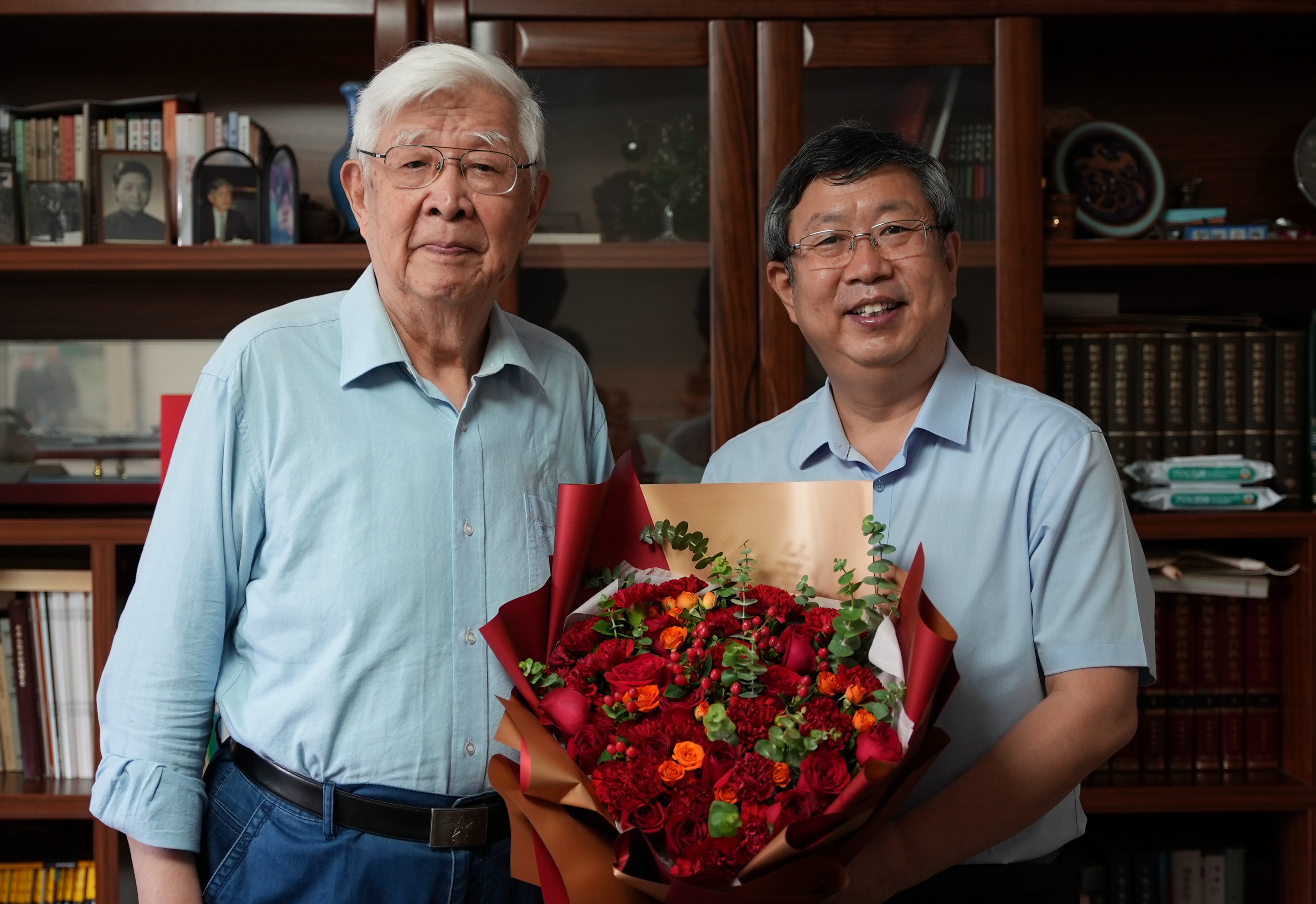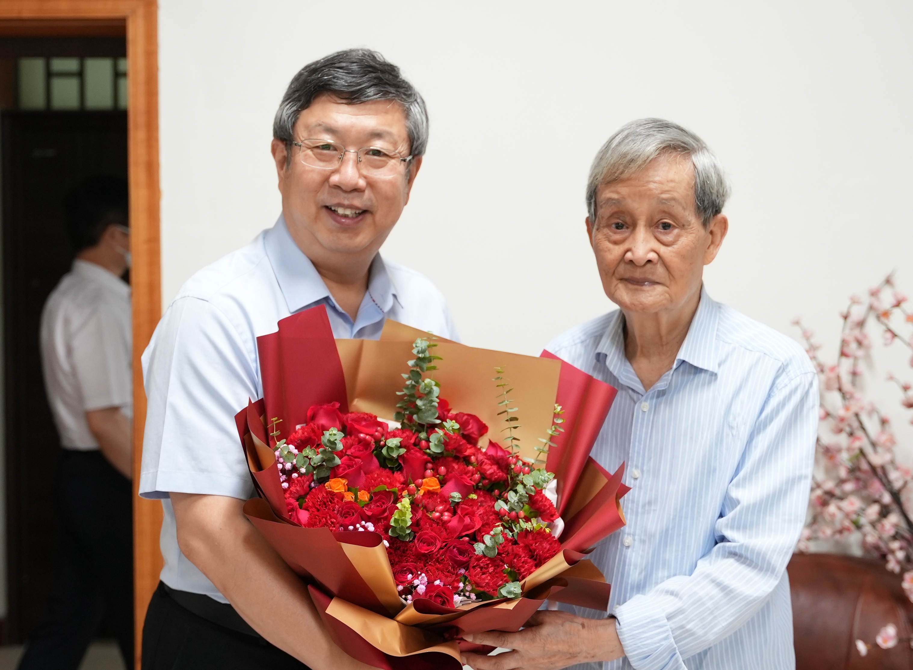 刘炯天来到南校区化学楼看望慰问吴养洁院士。吴养洁主要从事物理有机、金属有机及大环化学等领域的研究,担任河南省化学生物与有机化学重点实验室主任。他1958年从莫斯科大学毕业后就来到ac米兰官网中文网站工作,已经在学校奉献了63个春秋,其创立的“崔-吴偶联反应”享誉国际,是河南培养的第一位“本土”院士。刘炯天详细询问了吴院士的身体状况,并向他致以节日的问候。刘炯天表示,吴院士63年如一日坚守教学科研一线,为学严谨,科研成果丰硕,学术造诣深厚,为国家培养了大批化学人才,为ac米兰官网中文网站化学一流学科建设作出了突出贡献。他祝福吴院士身体康健,继续带领团队打造化学学科高峰。吴院士对学校的关心和问候表示感谢,表示将继续立足岗位,瞄准科技创新前沿,带领团队不懈奋斗,为国家科技进步和学校一流大学建设作出新的贡献。