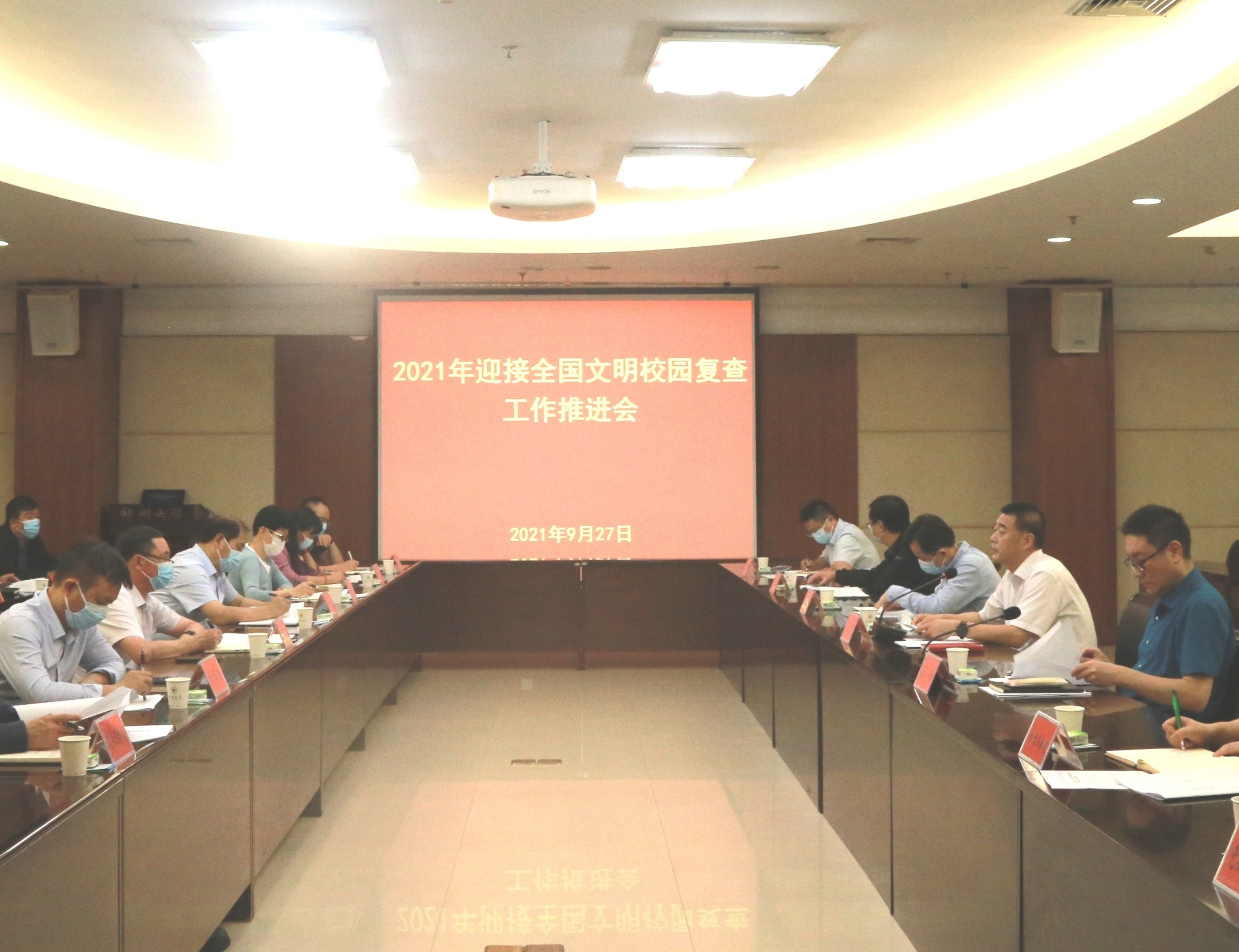吴宏阳在讲话中指出,高校是社会主义精神文明建设的重要阵地,创建全国文明校园是立德树人的根本要求,是建设世界一流大学的必然要求,做好迎接全国文明校园年度复查工作也是学校党史学习教育“我为师生办实事”实践活动的一项重要内容。各级党组织要切实承担起精神文明建设的主体责任,充分认识创建全国文明校园的重要意义,增强迎接复查工作的责任感和紧迫感,凝聚创建全国文明校园的强大合力,引导广大师生员工做好基础文明养成、常态化疫情防控、校园环境优化和返校复学等工作,切实把创建全国文明校园作为一项民生、民心、民享工程抓好抓实,推动学校精神文明建设再创佳绩,在党史学习教育中再添奋进之笔,努力为在中原大地起高峰贡献更大的力量。
