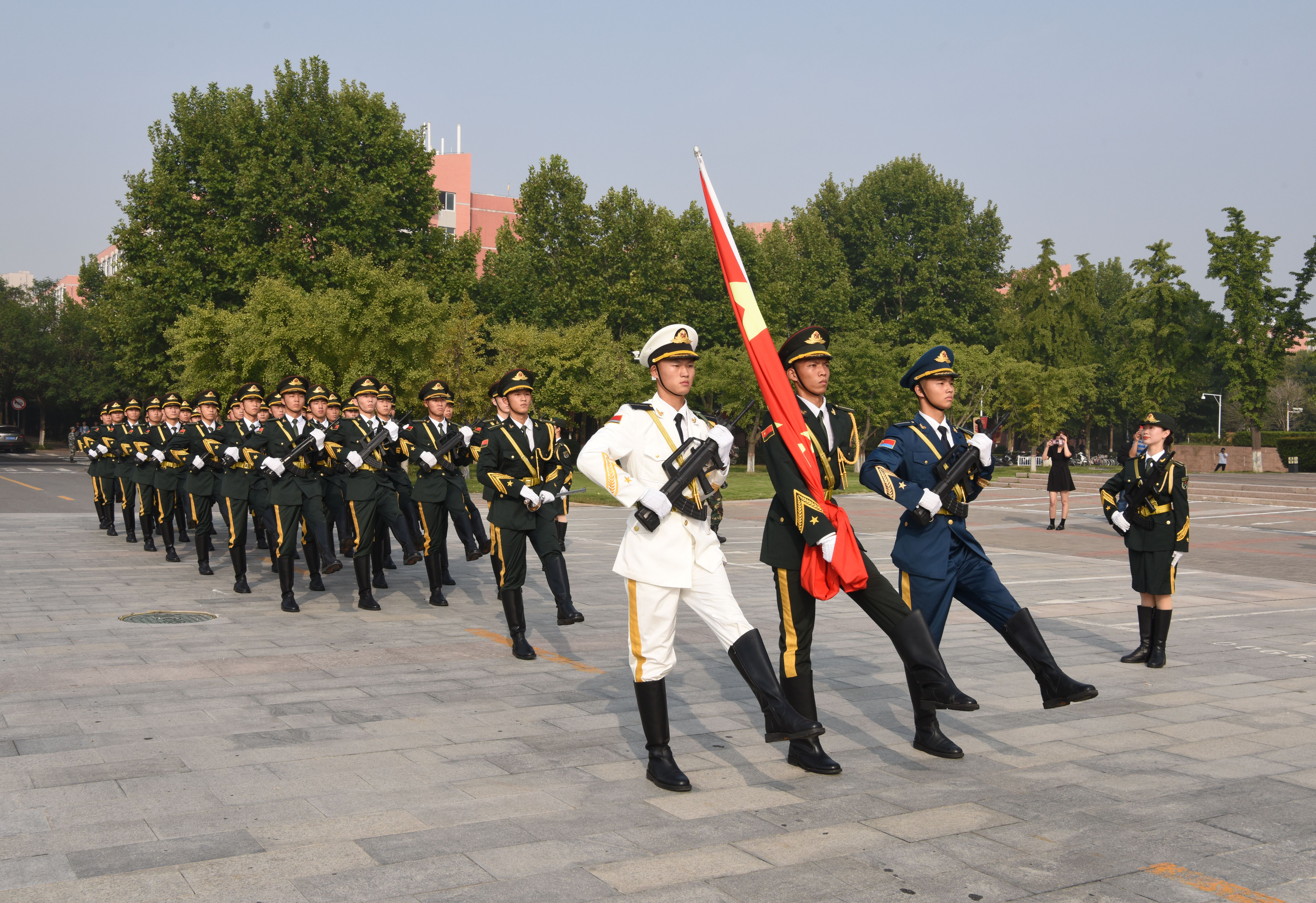 9时整,升旗仪式正式开始。由ac米兰官网中文网站国旗护卫队队员组成的护旗方阵,迈着整齐有力的步伐,护卫着五星红旗走向升旗台。在雄壮豪迈的国歌声中,擎旗手将国旗抛向空中,鲜艳的五星红旗冉冉升起。全体师生肃然而立,共唱国歌,向缓缓升起的国旗行注目礼,送上对祖国最深切的祝福。