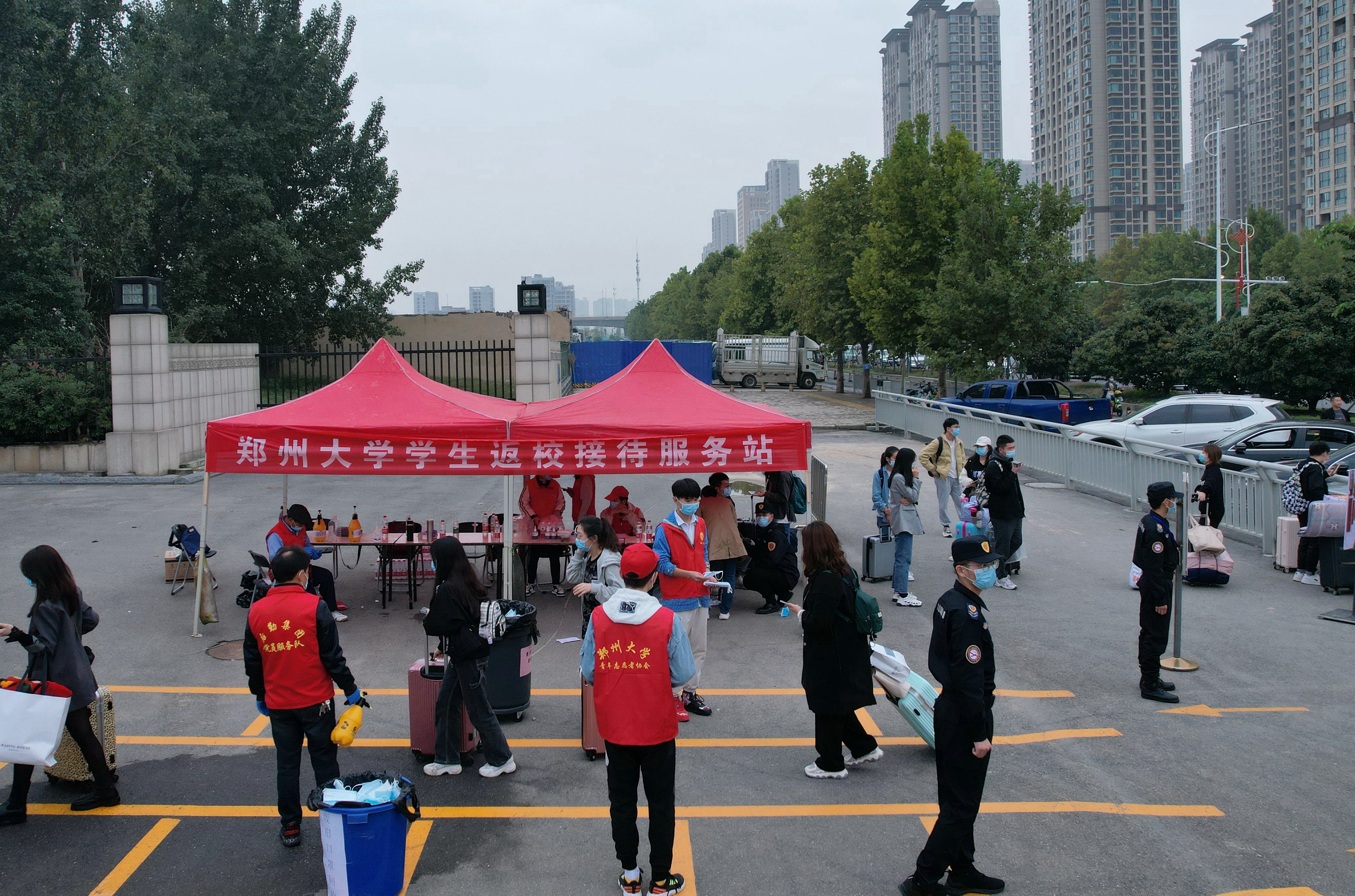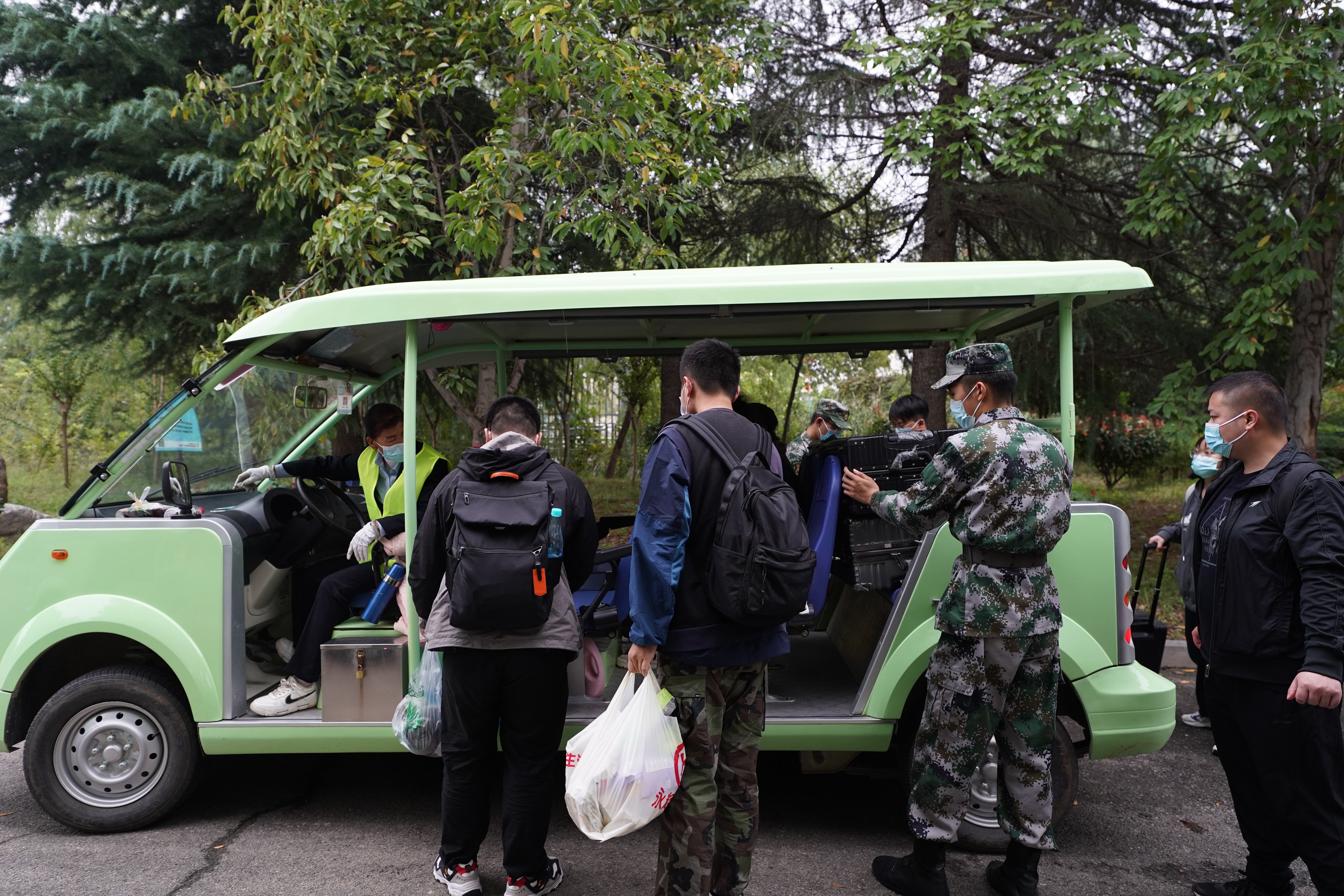 在主校区、南校区、北校区、医学院,报到现场秩序井然。同学们在工作人员和志愿者的指引和帮助下,依次通过扫码确认、行李消杀、领取并更换口罩、体温检测、身份核验、提交核酸检测证明等流程,有序回到阔别许久的校园,并乘坐学校提供的摆渡车到指定的核酸检测点,检测完后回到宿舍。