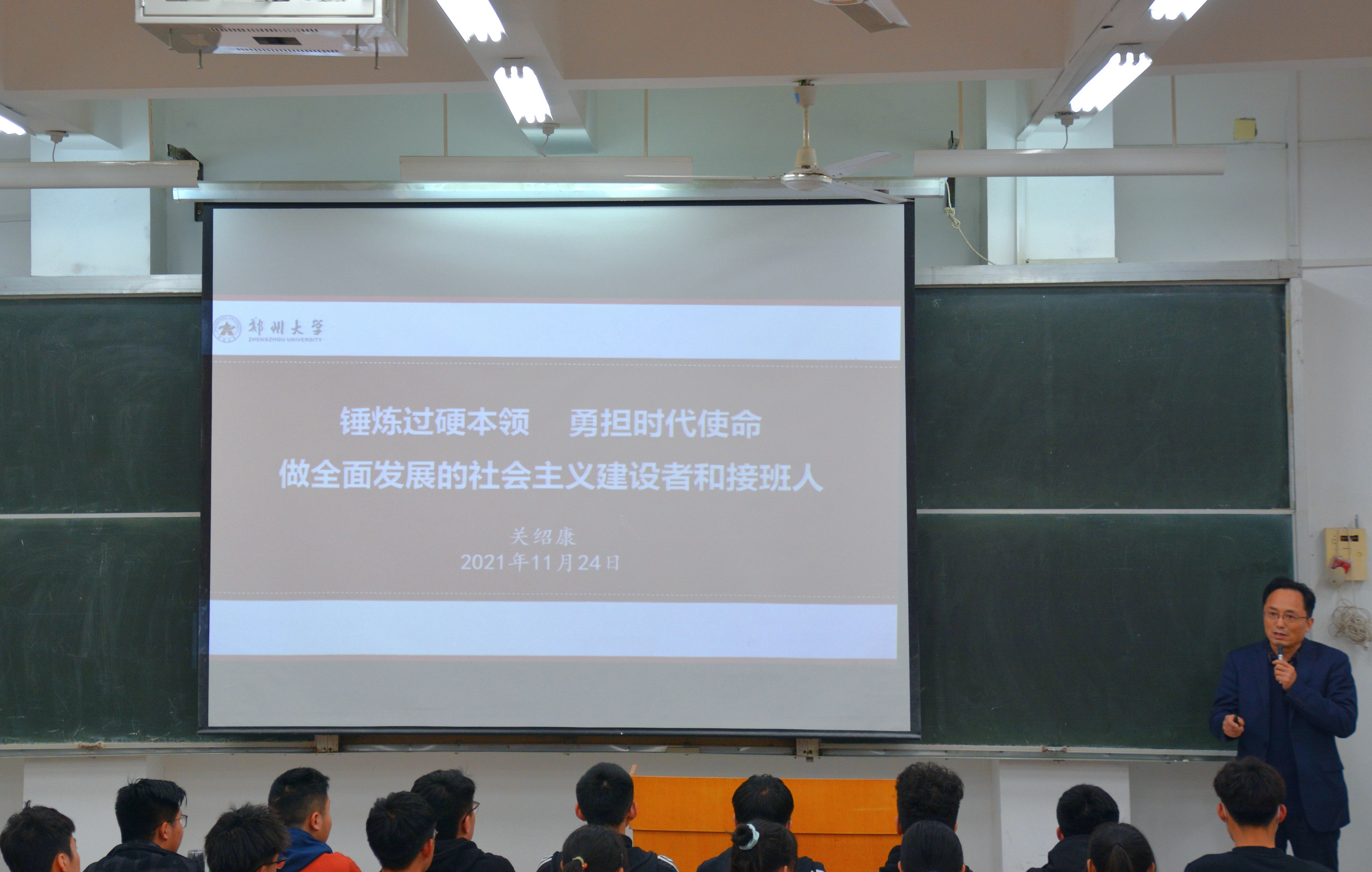 11月24日,校党委常委、副校长关绍康以《锤炼过硬本领,勇担时代使命——做全面发展的社会主义建设者和接班人》为题,为国际学院21级材料科学与工程专业新生讲思政课,国际学院班子成员、教师及学生代表200余人聆听课程。