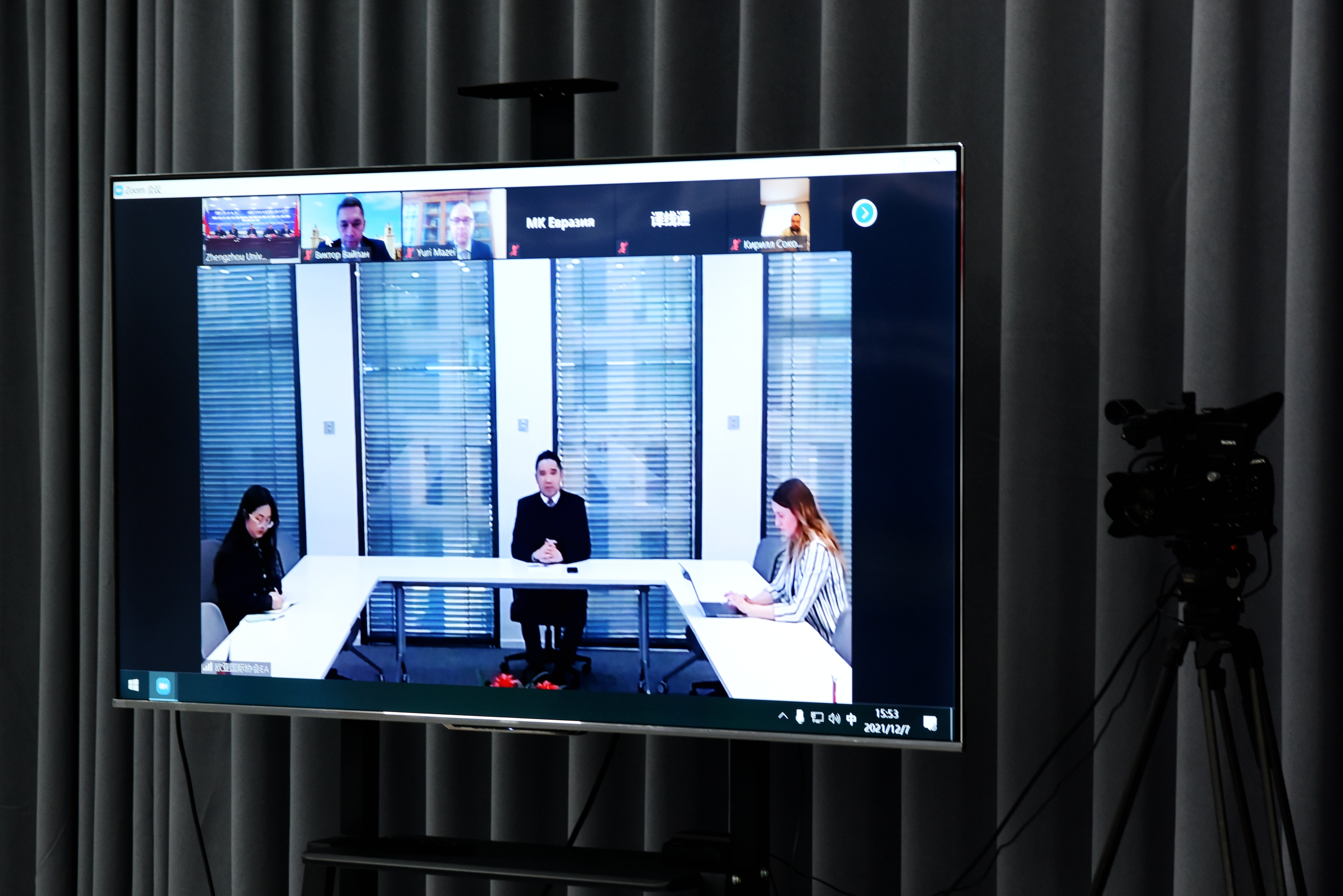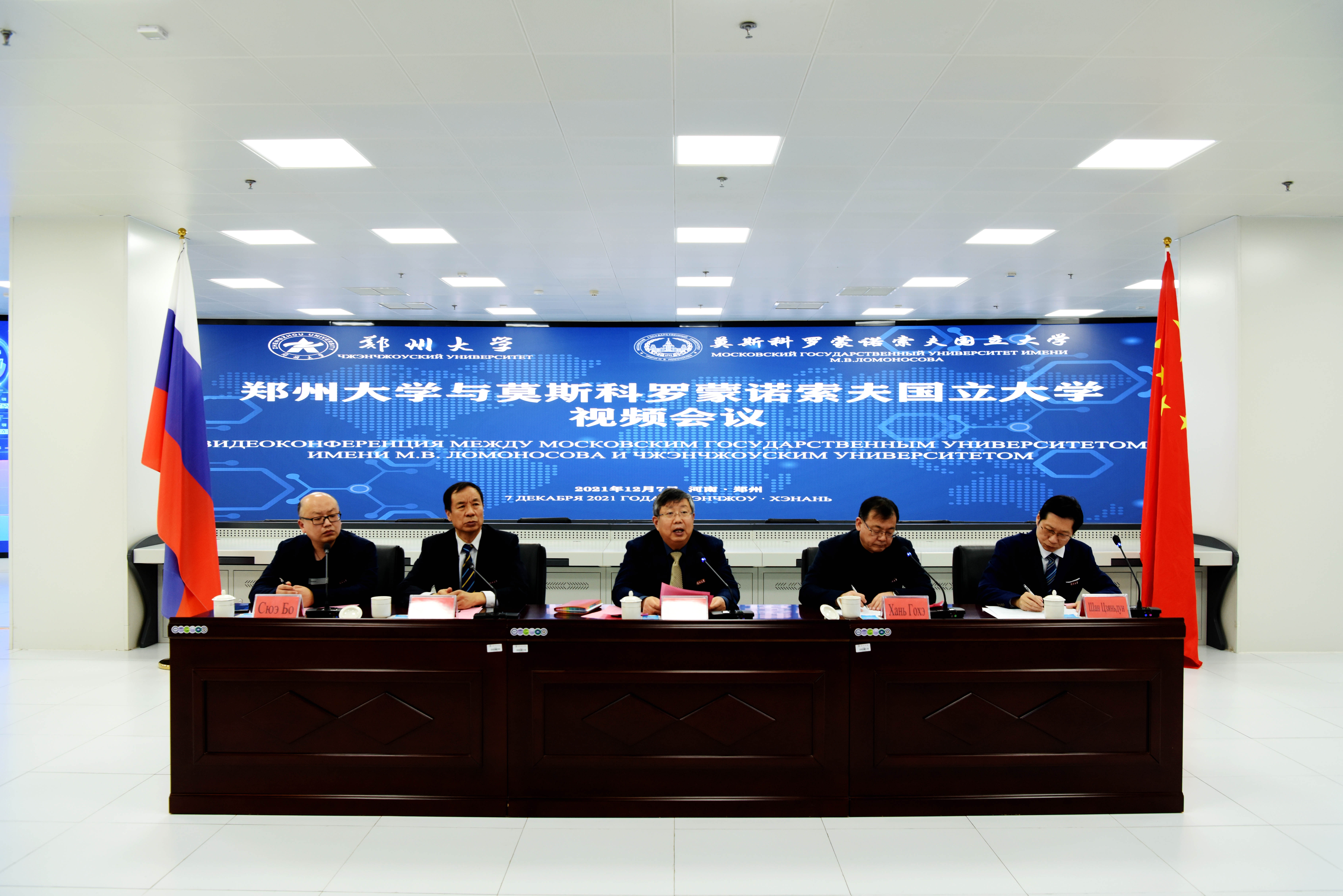 12月7日下午,ac米兰官网中文网站与莫斯科罗蒙诺索夫国立大学(简称莫斯科大学)举行线上视频会议。莫斯科大学科技副校长兼国家创新中心总裁韦潘·维克多·阿列克谢耶维奇、国际合作副校长玛扎伊·尤里·亚力山大耶维奇、国家创新中心副总裁索卡洛夫·吉利尔,欧亚国际协会会长冯耀武,河南省政协副主席、ac米兰官网中文网站党委书记、校长刘炯天出席,ac米兰官网中文网站相关单位负责同志参加会议。会议由校党委常委、副校长韩国河主持。