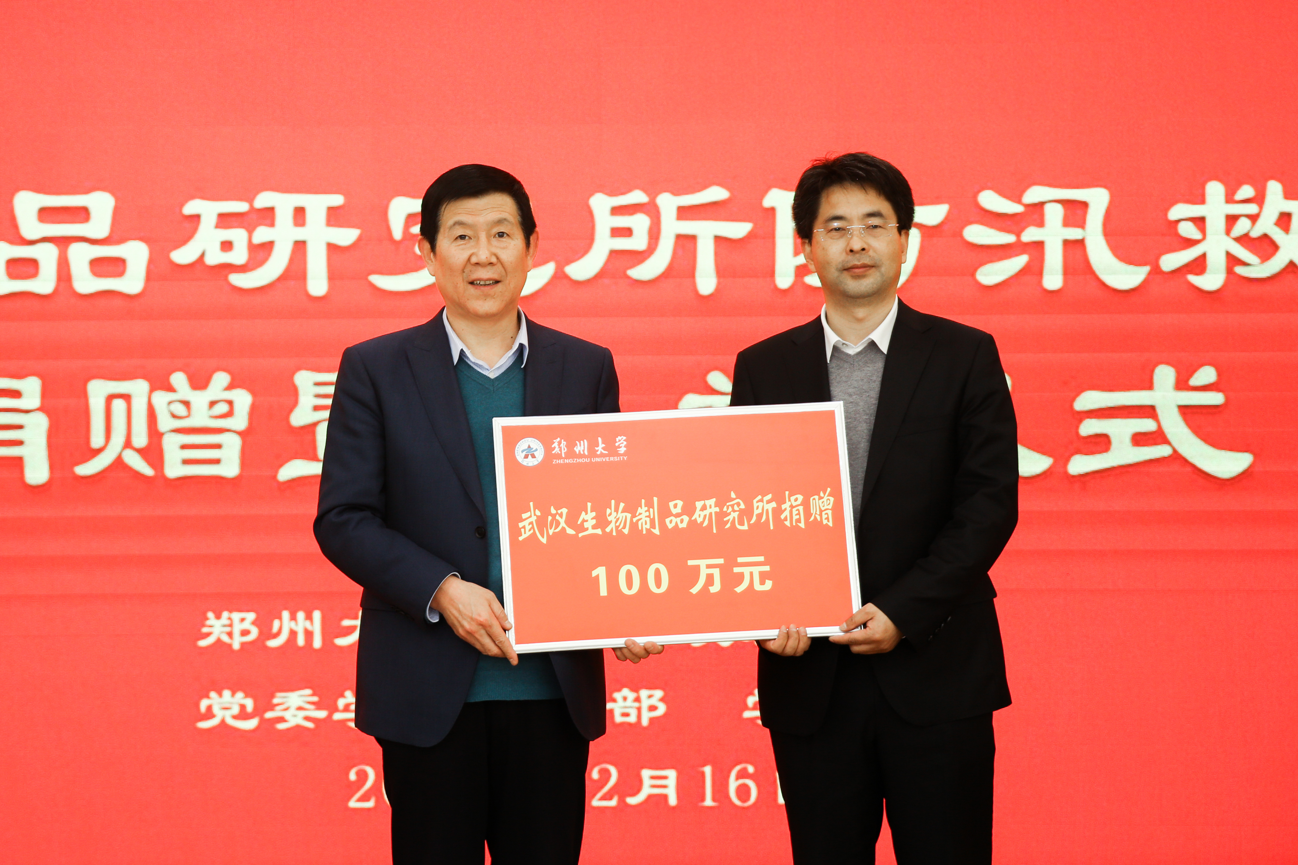关绍康在致辞中对大灾面前挺身而出的武汉生物制品研究所及其善行爱心表示敬意及感谢,并简要介绍了ac米兰官网中文网站近年来的发展情况。他表示,学校的发展进步离不开广大校友和社会各界的鼎力支持。此次防汛救灾,武汉生物所更是以实际行动为郑大学子送上温暖。希望受助学生常怀感恩之心,将爱心转化为勤奋学习的动力源泉,树立远大理想,练就过硬本领,用优异的成绩回报学校和社会。