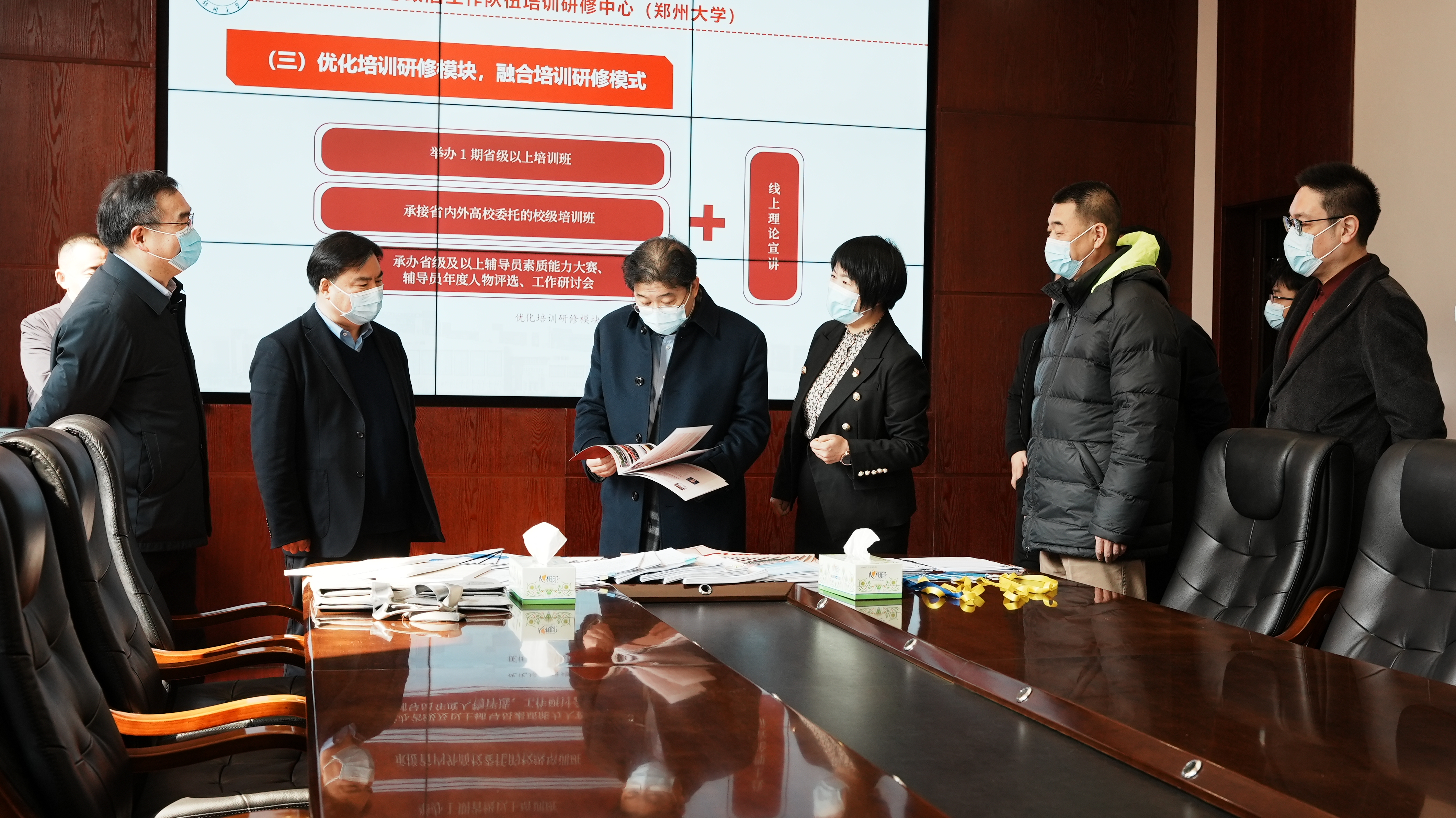 随后,张文斌一行到高校思想政治工作队伍培训研修中心(ac米兰官网中文网站),详细了解中心的发展进程和建设情况。作为教育部首批国家级高校思想政治工作队伍培训研修中心之一,中心近年来通过建立完善的国家级、省级、校级三级队伍培训核心课程体系和“理论提升+实践锻造+观摩研讨”的三维培训方案,积极打造集培训研修、理论教育、实践探索、政策咨询等职能为一体的培训研修平台。张文斌翻阅了中心的科研成果和培训资料,对中心发挥的辐射带动作用表示赞许。