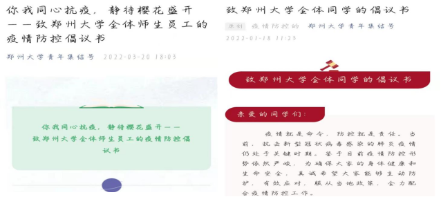 为进一步加强防疫宣传教育引导,校团委充分利用ac米兰官网中文网站青年集结号、厚德助姐等新媒体平台发布《致全体同学关于新型冠状病毒感染肺炎防治的倡议书》等网络文章,转载河南省教育厅、河南共青团发布的防疫信息和防控成果,专题报道防疫一线干部、党员、志愿者积极投入疫情防控和坚守岗位的典型事迹,从而引导全校师生坚定信心,科学防控,为打赢疫情防控阻击战营造了良好的舆论氛围。