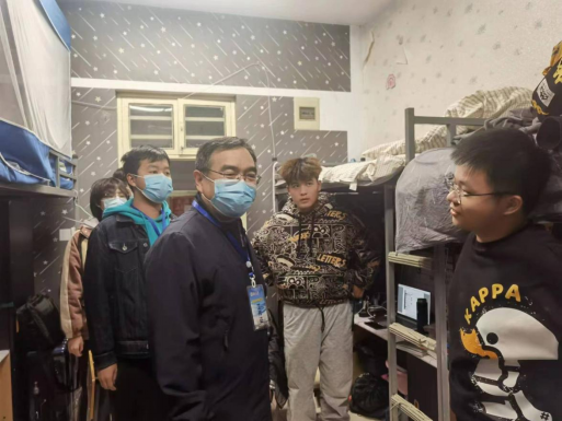 学工部全体成员与辅导员一道践行“一线规则”,深入一线联系学生,通过走访宿舍、深入课堂、走进宿舍等深入一线活动,深入了解学生思想动态、学习生活、个人发展等情况,现场收集同学们各方面的意见建议,及时反馈解决。努力做好疫情防控的组织者、学生生活的陪伴者、青年思想的引领者,与学生们一起并肩作战、众志成城抗击疫情。