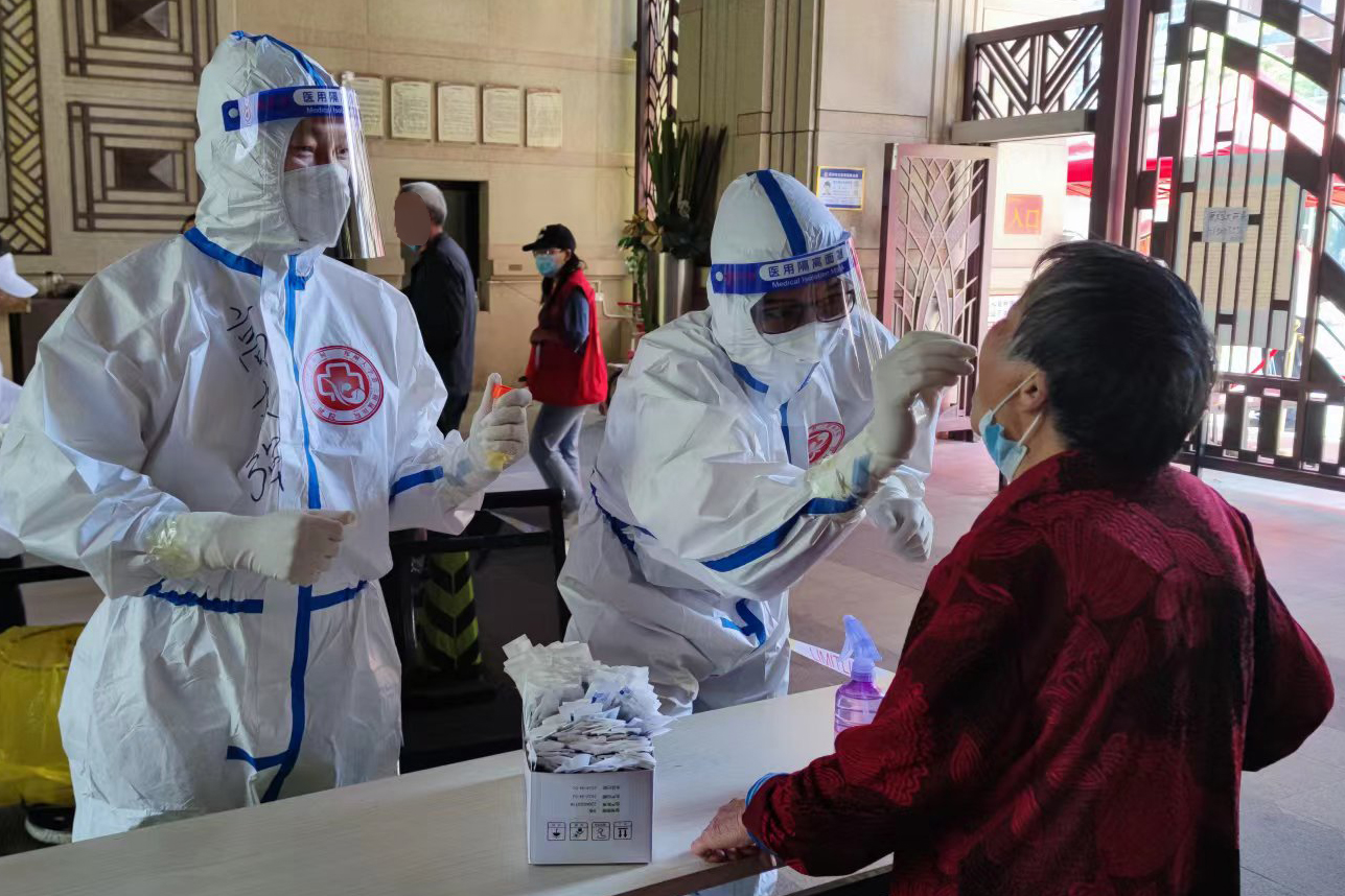 一名党员就是一面旗帜,一名党员引领一支队伍。“作为一名党员,危难时刻,我就应该冲锋在前,和市民共渡难关。”认知障碍二科主任高永强是核酸采样队的一名领队,5月5日已经是他连续第4天带队出征,连续战斗的他总是身先士卒,上门采样、给队员鼓劲、与社区沟通,他用实际行动带动着同事,和大家一起坚守在疫情防控第一线。