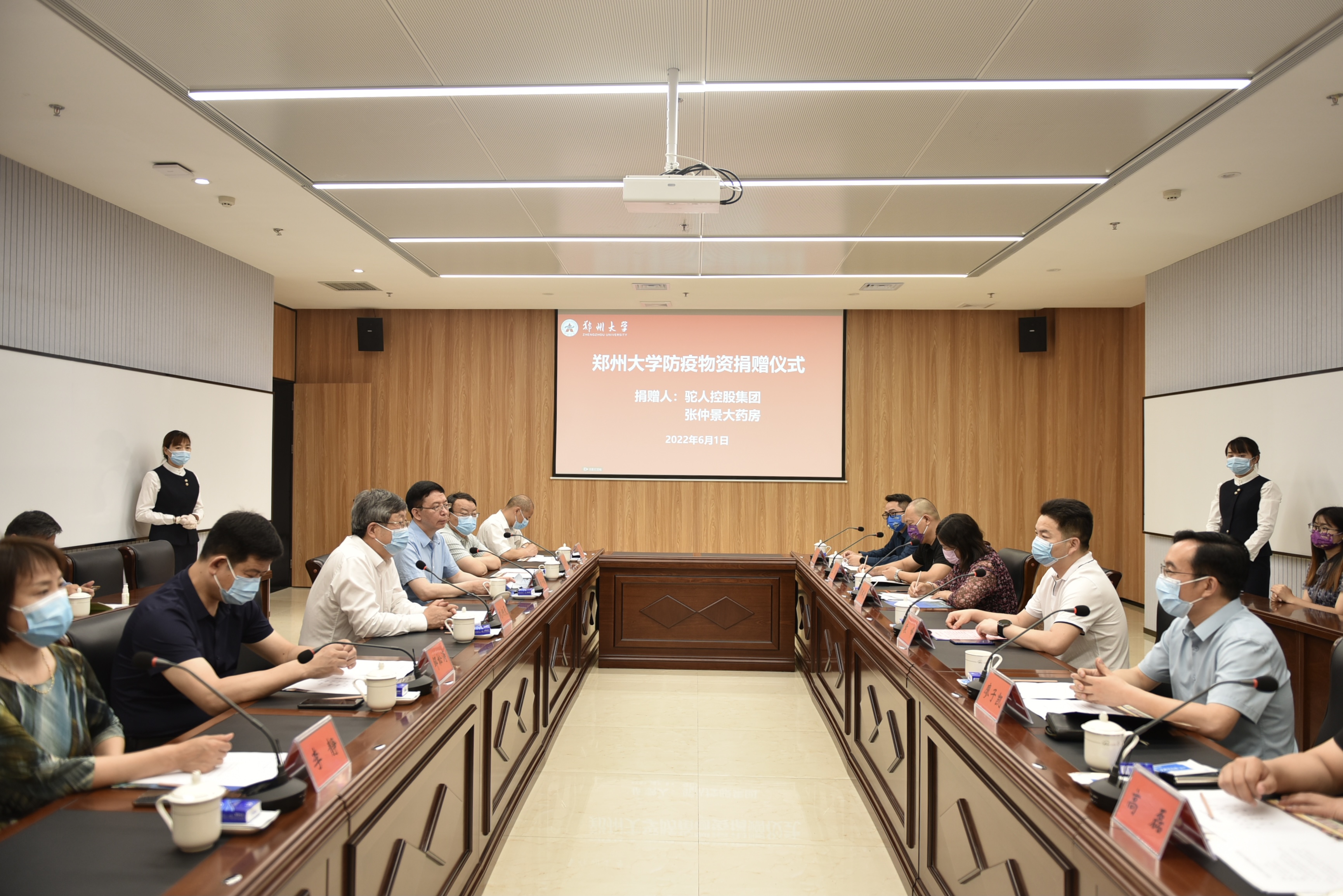 6月1日,ac米兰官网中文网站举行防疫物资捐赠仪式,接收河南省中原社会工作发展基金会和驼人控股集团、河南张仲景大药房股份有限公司捐赠的防疫物资。河南省政协副主席,校党委书记、校长刘炯天出席仪式并接受捐赠,河南省中原社会工作发展基金会理事长袁峰,驼人控股集团董事长顿瑞敏,河南张仲景大药房股份有限公司常务副总经理廖子凯出席捐赠仪式并讲话。仪式由副校长、医学院院长董子钢主持。学校党委办公室、校长办公室、防控办、校医院、医院管理办公室、医学院负责同志参加仪式。