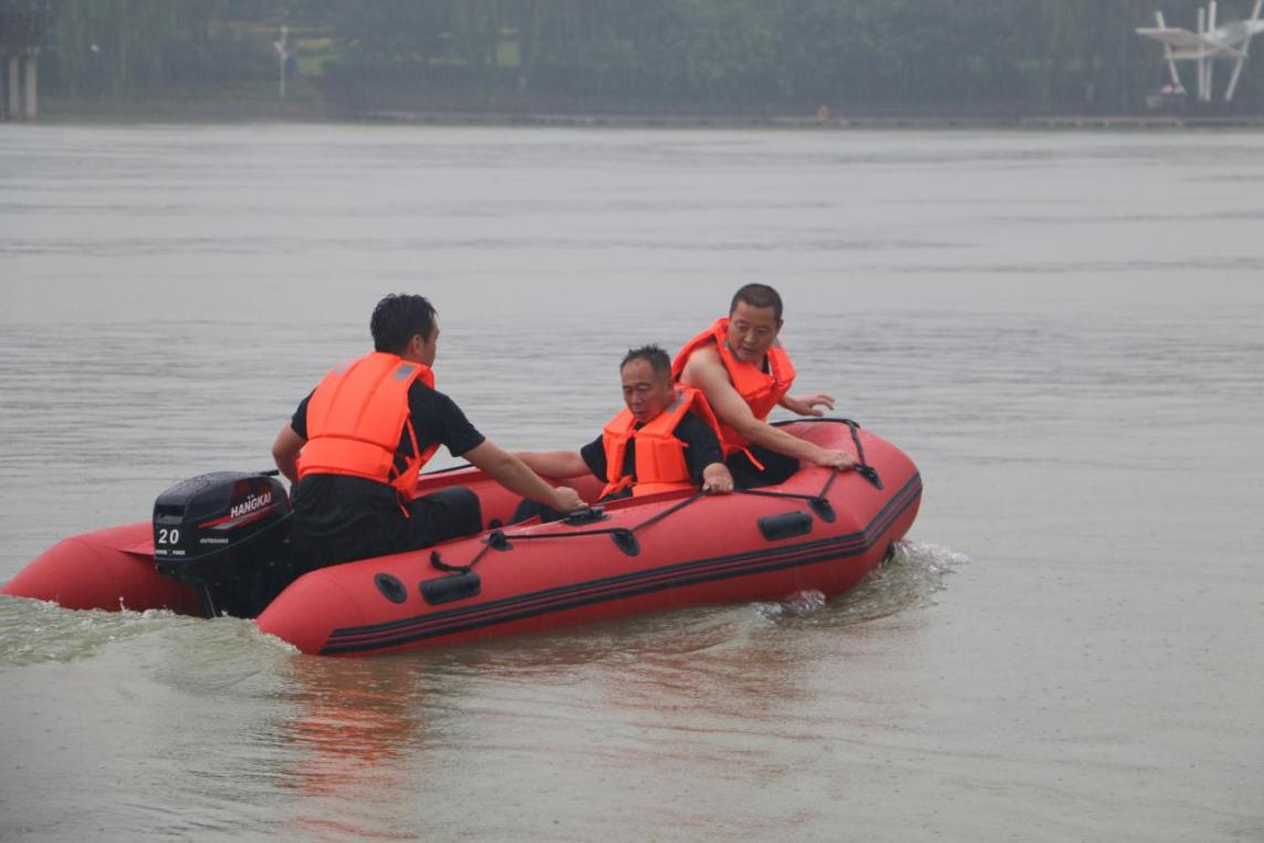 为切实提高防汛应急抢险救援能力,抓紧抓实抓细暑期防汛备汛各项工作,按照学校防汛工作领导小组工作安排和保卫处防汛工作动员部署会要求,7月15日,保卫处联合郑州市高新区消防救援大队、河南力盾保安公司,组织20余名校园应急救援骨干在天健湖开展防汛应急实战演练。