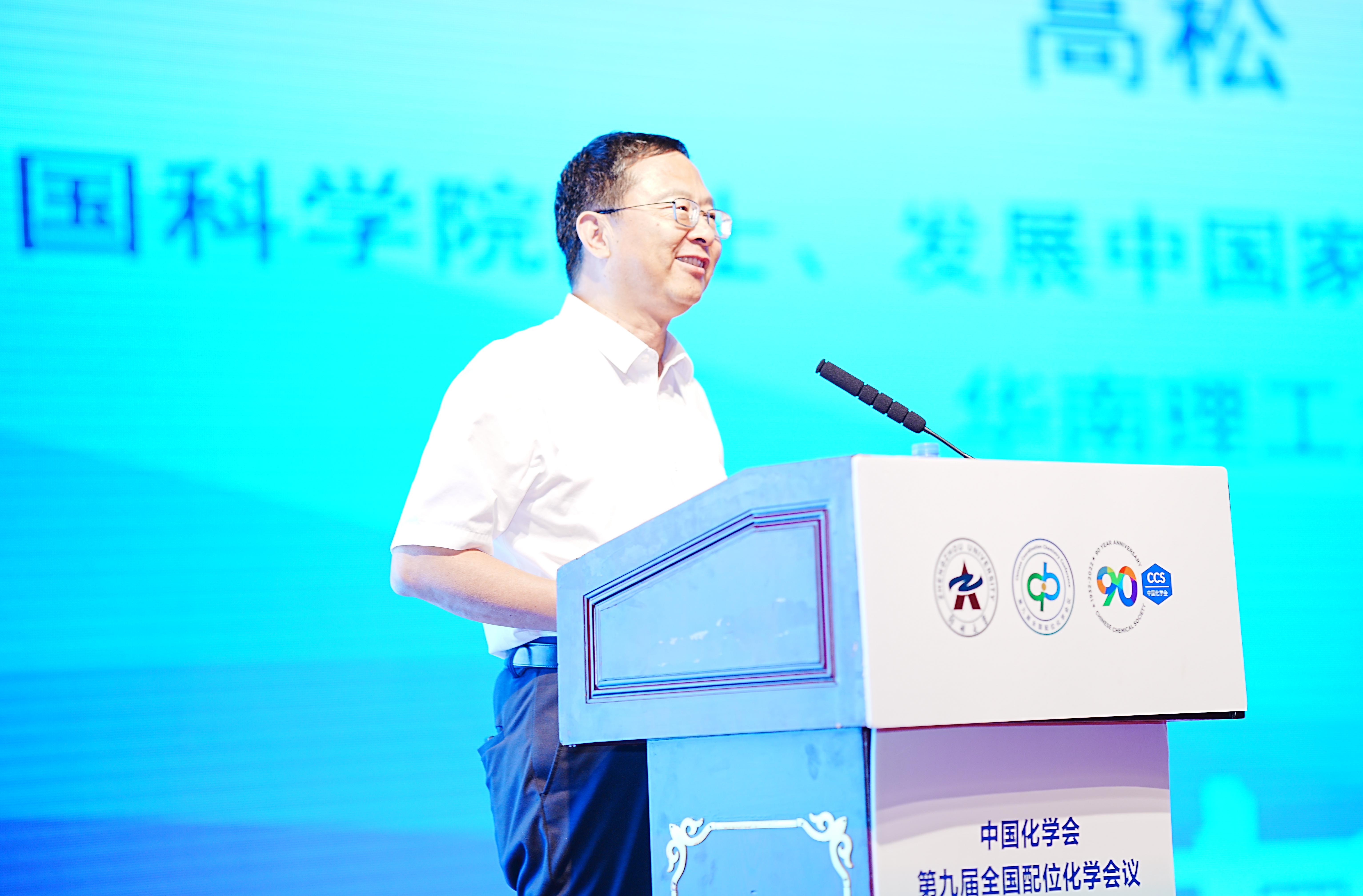 开幕式上,陈小明院士作为大会共同主席致辞。他对出席会议的各位嘉宾表示欢迎,并对ac米兰官网中文网站精心承办此次会议表示感谢。他表示,恰逢中国化学会成立90周年,各位专家学者汇聚一堂,共话新时代配位化学的机遇与挑战,希望通过此次盛会的举办,交流经验、分享心得、共谋发展、共话征程,促进配位化学相关领域发展的沟通,推动我国配位化学及相关学科科学技术的发展。