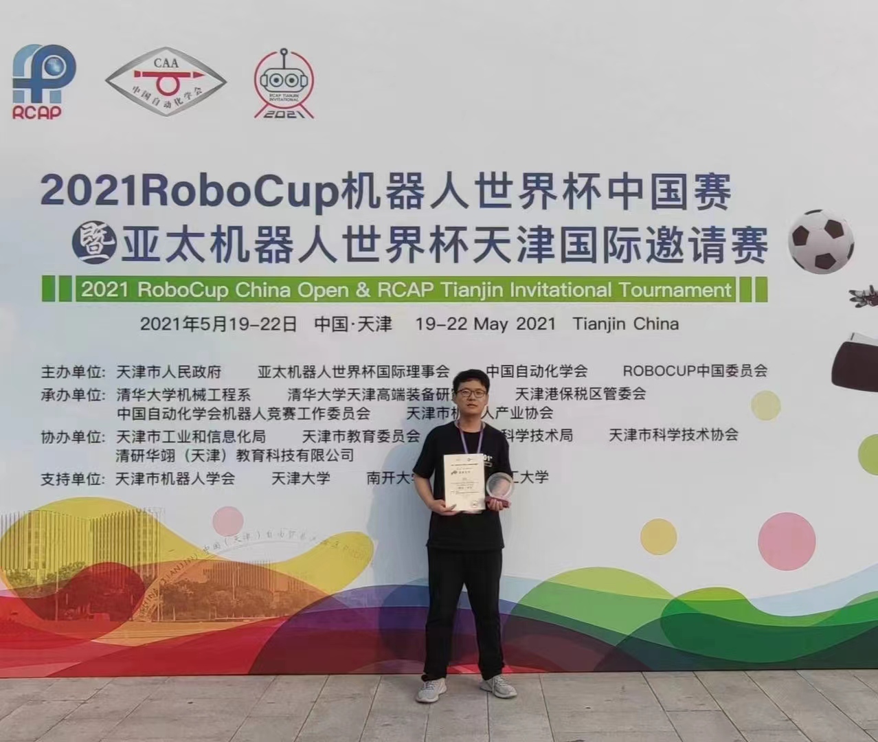 大一快结束的时候,我得知学院的服务机器人实验室有招新,决定抓住这次机会,加入实验室。但是实验室招收人数比较少,报名人数却很多,竞争很激烈,而且考核很严格,期间我也想过放弃,但是想到之前那么多机会都放弃了,这次无论如何都不能放弃了。最终我成功坚持了下来,完成了考核任务,幸运地成为了其中一员。进入实验室后,用来学习专业课的时间自然少了很多,课堂上的时间就显得尤为宝贵,我就要求自己在课堂上保持高度专注,课堂上就要把百分之九十的问题解决,这样课后的大把时间我可以用来学习机器人和人工智能相关的知识,为参加机器人比赛做准备。当时和我同届的还有四名实验室成员,我会经常邀请他们一起来商讨方案和分配任务,有时候也会遇到很多棘手的问题,大家就一块来商讨解决方案,甚至有些问题会卡一两周,可是大家都没有放弃,晚上都一直到很晚才回宿舍。后来我们在机器人大赛上取得了两项冠军、一项亚军,我想这与我们的团结合作是分不开的。