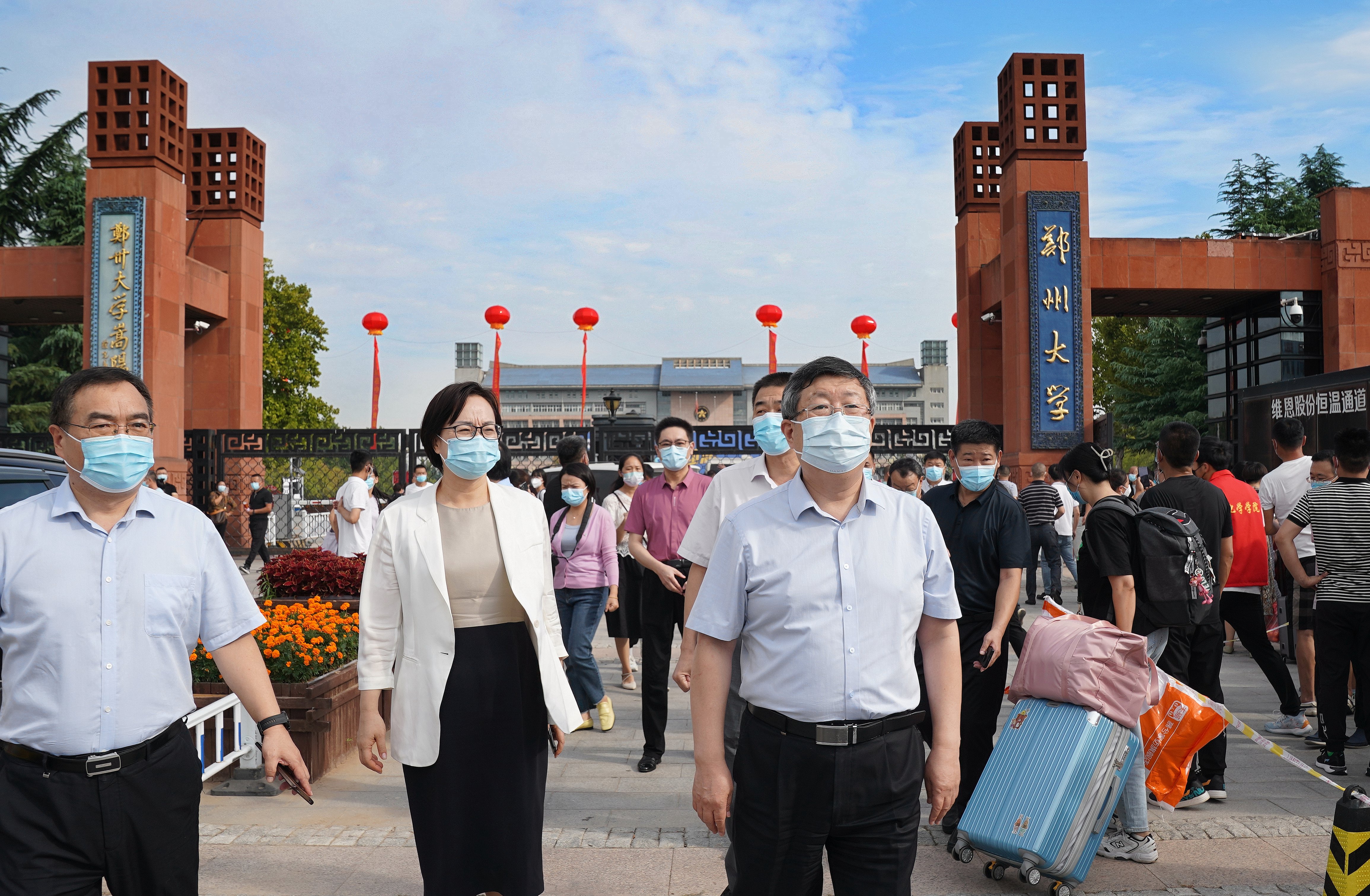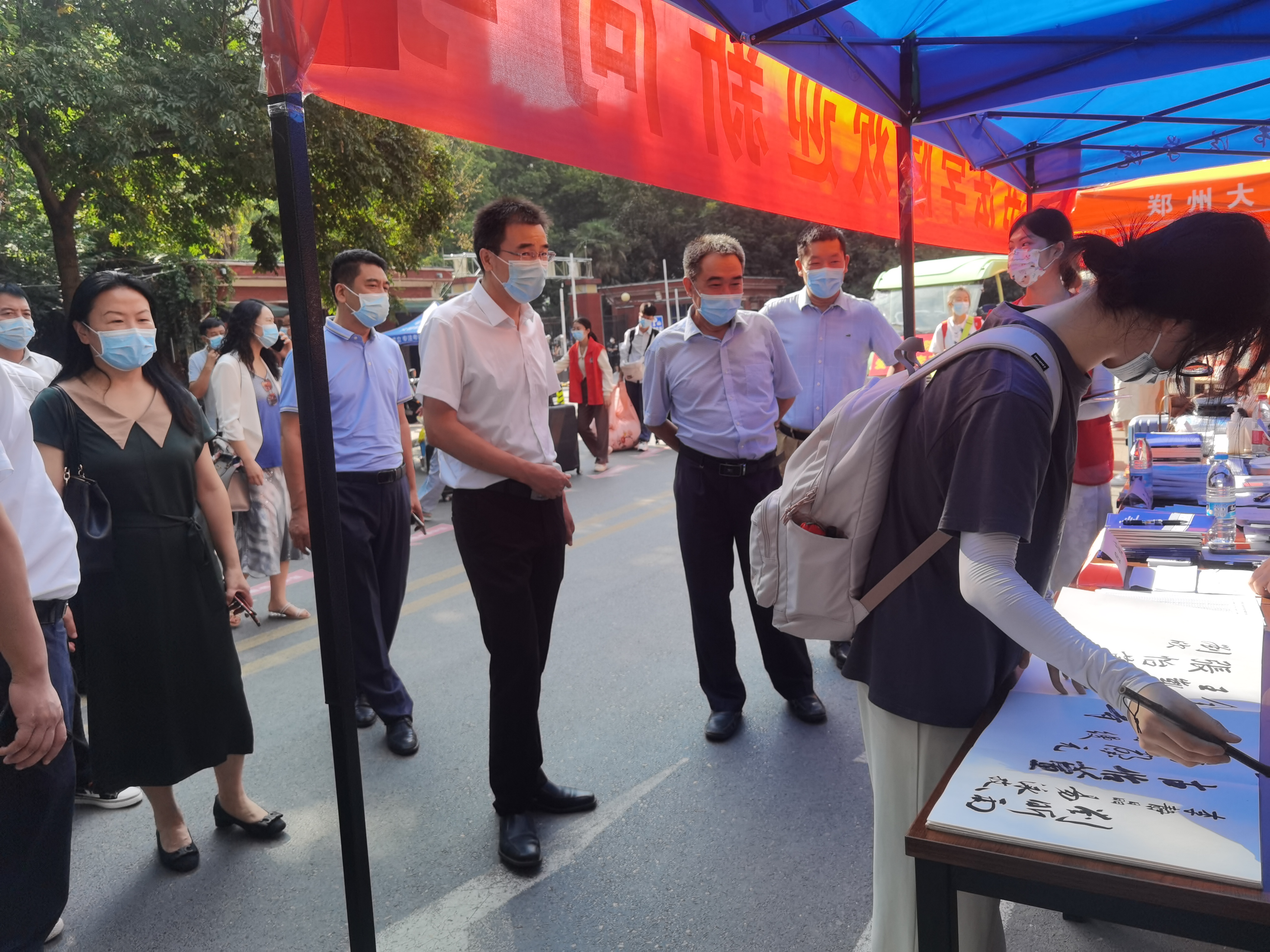 在疫情防控常态化背景下,学校提前谋划、全面部署,召开迎新工作协调会,制定迎新工作方案,打造以“云端迎新”为主题的“4+1”一站式迎新平台,将迎新事项线上化、前置化,高效有序推进各项工作。9月3日至4日,学校组织新生线上注册报到,举行新学期升国旗仪式,开启线上教学和入学“四爱”教育,上好全省秋季开学思政第一课,为新生了解融入校园生活打下坚实基础。9月18日,为顺利迎接新生到来,校领导刘炯天、李蓬、吴宏阳、张倩红、韩国河、许东升、单崇新,校党委常委、总会计师徐东升、校党委常委、宣传部部长厉励以及相关单位负责同志分别在主校区、郑州火车站、郑州东站、南校园、北校园检查指导迎新工作,并慰问新生、工作人员及志愿者。