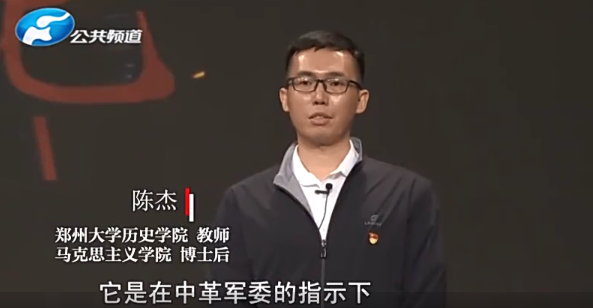 在节目中,陈杰为大家讲述了红二十五军长征的历史脉络,重点介绍了红二十五军长征创造的五大奇迹和典型人物、重要战斗。看完为叶光宏烈士寻亲的故事,陈杰认为,叶光宏烈士年少离乡,随红二十五军从大别山出发长征北上,为了革命胜利而浴血奋战,英勇牺牲,他的事迹是伟大长征精神和大别山精神的重要载体,值得我们永远学习和铭记。围绕现场观众提出的如何走好自己的长征路和把红色基因更好地传承下去等问题,陈杰从制定目标和规划、培养专业兴趣、利用多元媒介、走进历史现场等角度给予解答,得到现场观众的一致认可。
