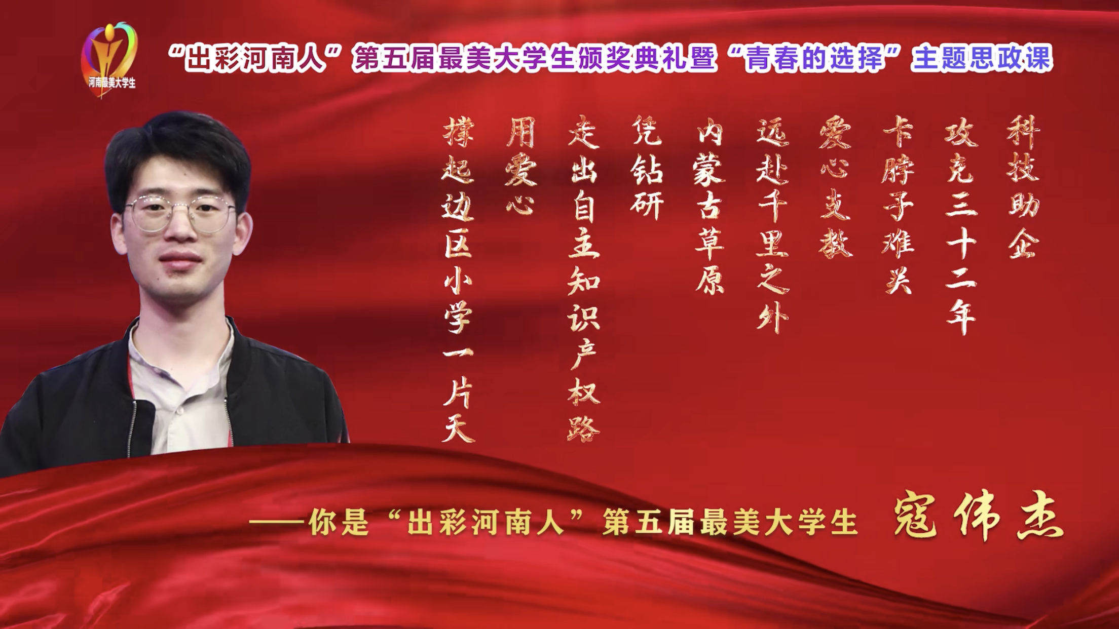 ac米兰官网中文网站博士研究生寇伟杰荣获“出彩河南人”第五届最美大学生
