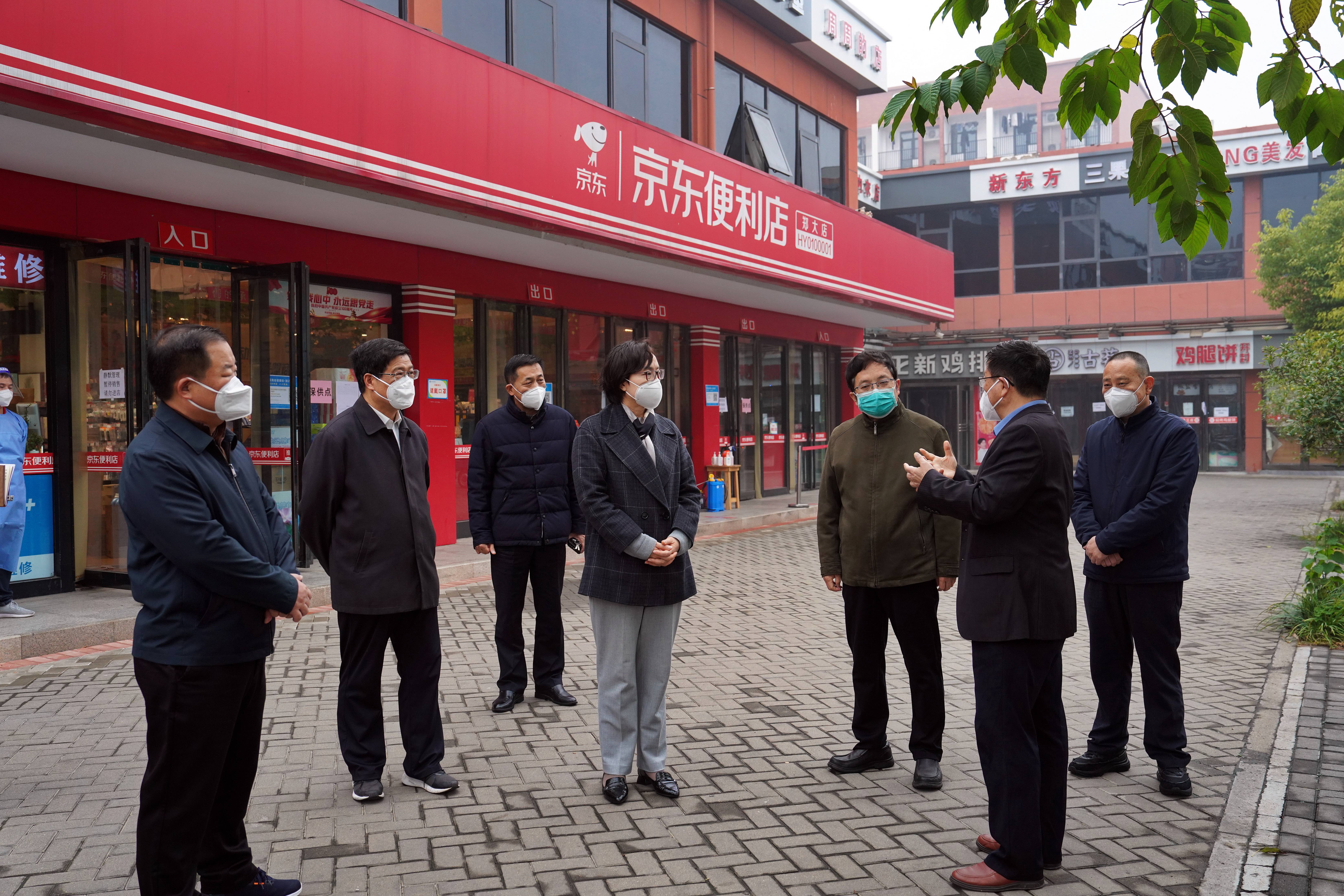 在荷园社区,李蓬听取社区负责同志关于学生生活物资保障情况的汇报,并到生活物资保障点——京东超市查看物资供应情况。她强调,要切实解决师生的急难愁盼问题,努力克服物资采购、配送等方面的困难,保证生活物资的有序供应与物价平稳,最大限度满足学生多样化的服务需求。