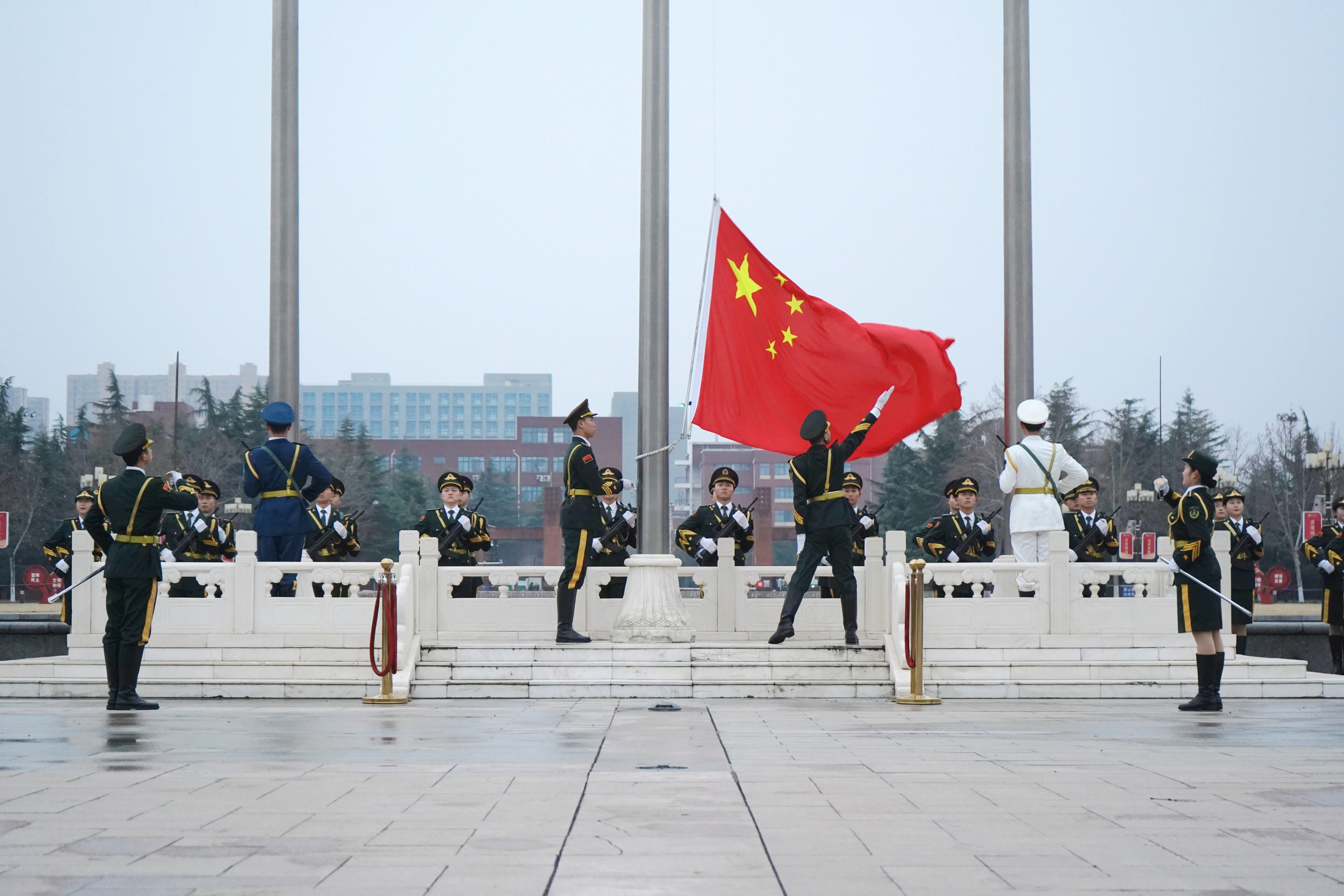 国旗是中华人民共和国的标志,代表着祖国的形象。举行升国旗仪式,向国旗敬礼致意,激励着新时代的郑大人,踔厉奋发,笃行不怠,自觉将个人命运同国家前途和民族命运紧密相连。时序更替,华章日新,新程再启,未来可期。全体郑大人将认真学习贯彻党的二十大精神,用实际行动扎实推进世界一流大学建设,为实现中华民族伟大复兴做出新的更大的贡献!(杨俊锋 孟祥峰 摄影)
