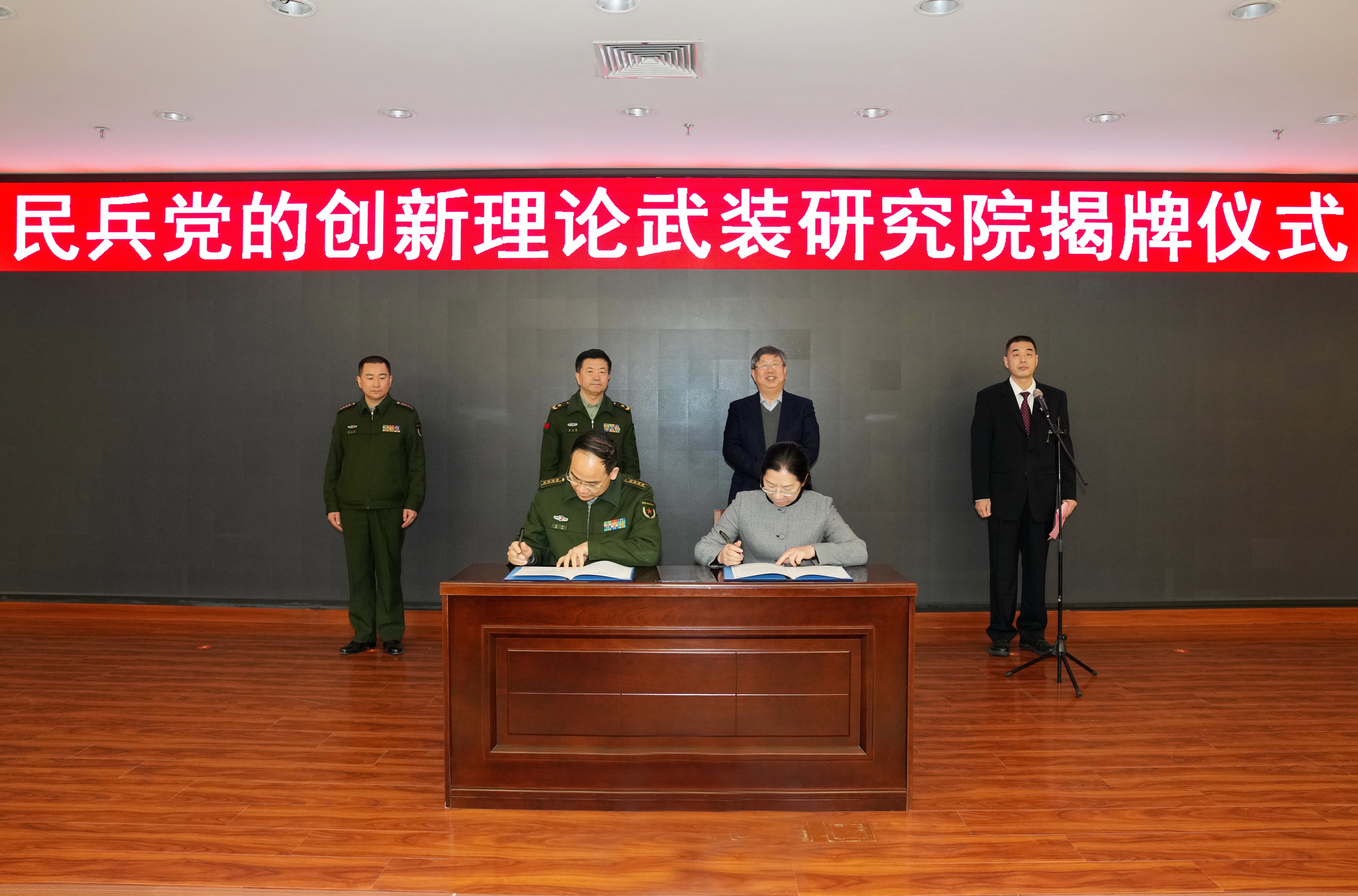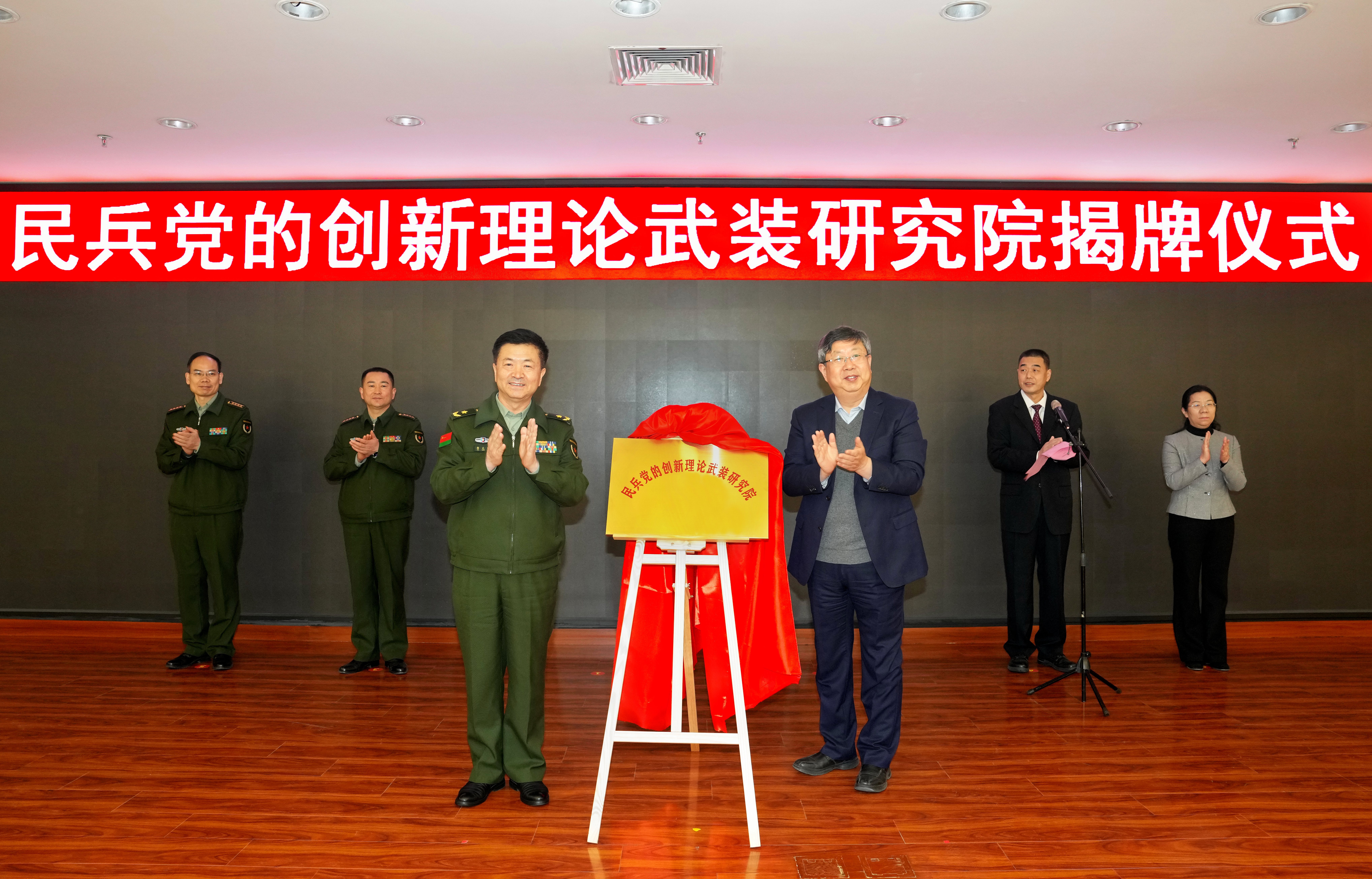 省委常委、省军区少将政委徐元鸿,省政协副主席、校党委书记刘炯天院士为“民兵党的创新理论武装研究院”揭牌