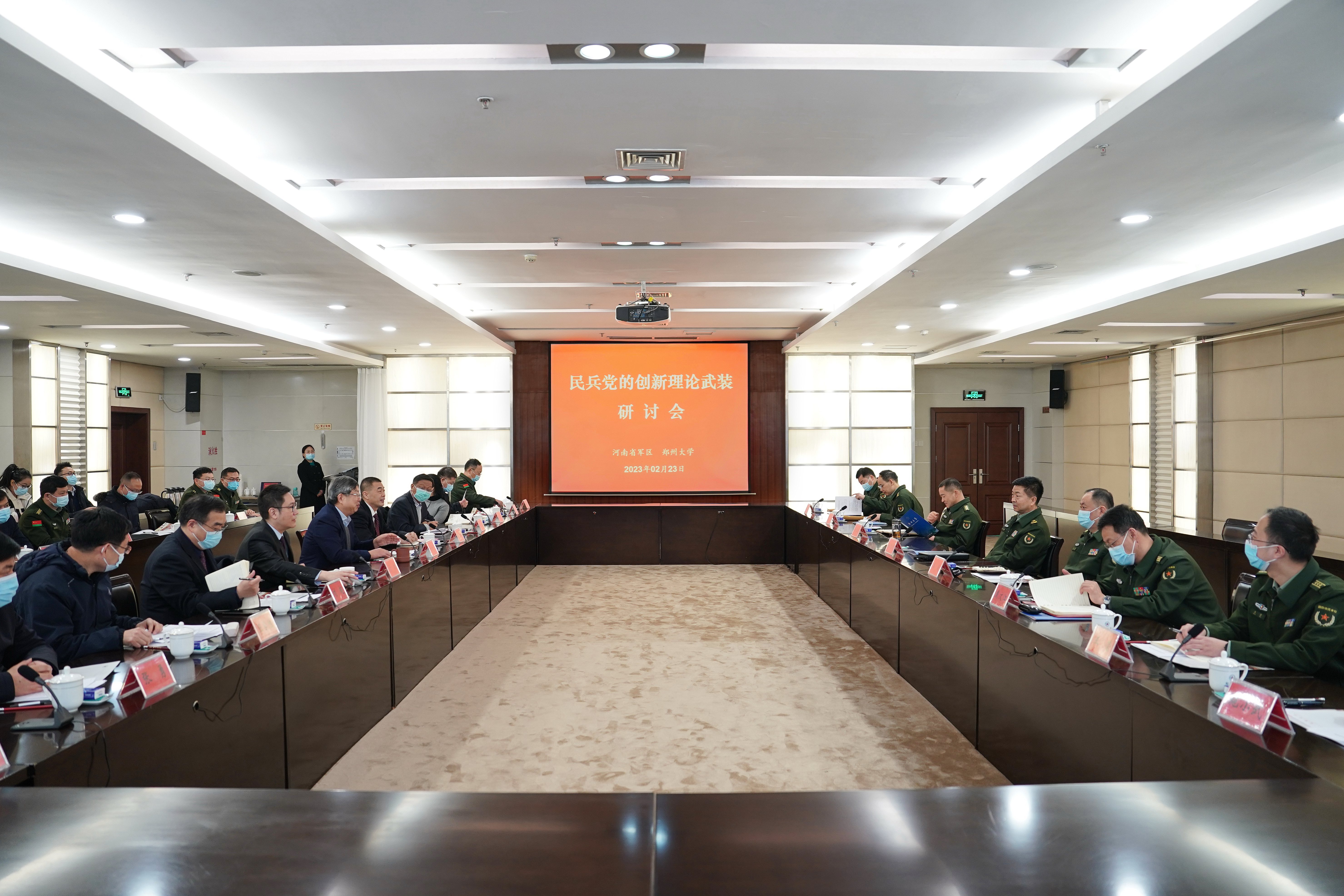 为深入学习贯彻党的二十大精神,落实国务院、中央军委《国防动员建设“十四五”规划》,加强民兵党的创新理论武装工作,推动我省国防动员和后备力量建设高质量发展,2月23日,ac米兰官网中文网站举办民兵党的创新理论武装研究院揭牌仪式暨民兵党的创新理论武装研讨会。省委常委、省军区少将政委徐元鸿,省政协副主席、校党委书记、中国工程院院士刘炯天,省军区动员局大校局长姜巍,郑州市委常委、郑州警备区大校政委白江民,省军区战备建设局大校副局长戴文江,校党委副书记吴宏阳出席,省军区政治工作局、中原区人民武装部负责人,校党委常委、宣传部部长厉励,学校党委办公室、人民武装部、社会科学处、马克思主义学院负责同志、师生代表参加活动。揭牌仪式由吴宏阳主持。