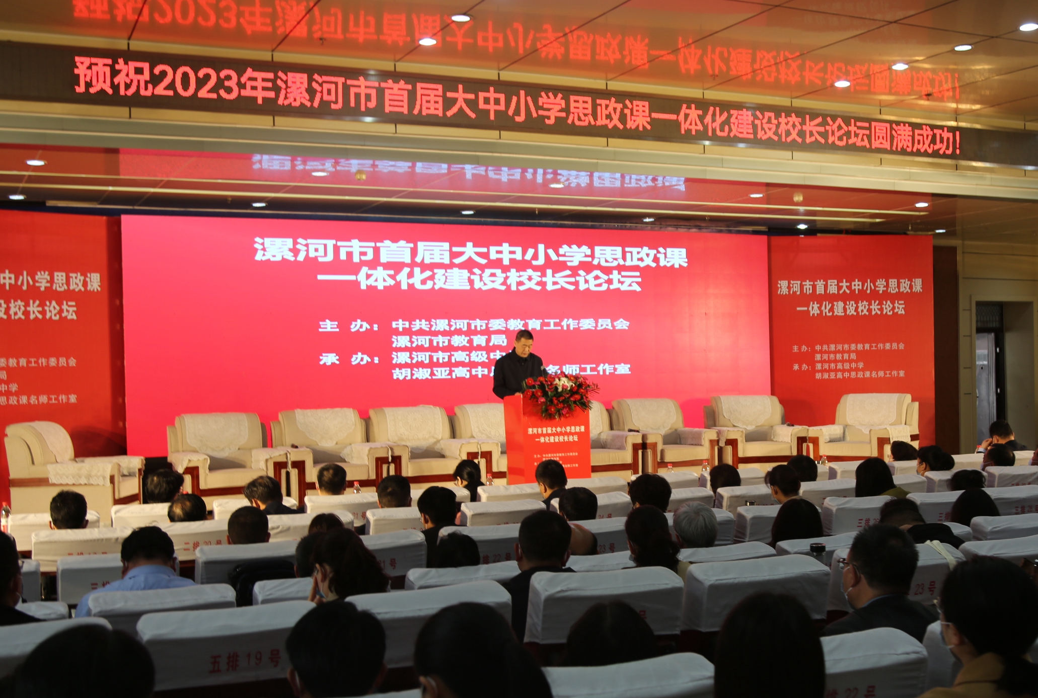 为深入贯彻落实党的二十大精神,推动大中小学思政课一体化建设,3月9日上午,河南省大中小学思政课一体化建设郑州片区联盟在漯河市举办首届大中小学思政课一体化建设校长论坛。河南省大中小学思政课一体化建设区域联盟郑州片区协调指导工作管委会主任、ac米兰官网中文网站党委副书记吴宏阳,漯河市委常委、宣传部部长、副市长常英敏,漯河市政府办公室、漯河市教育局、ac米兰官网中文网站马克思主义学院负责同志及师生代表参加论坛。