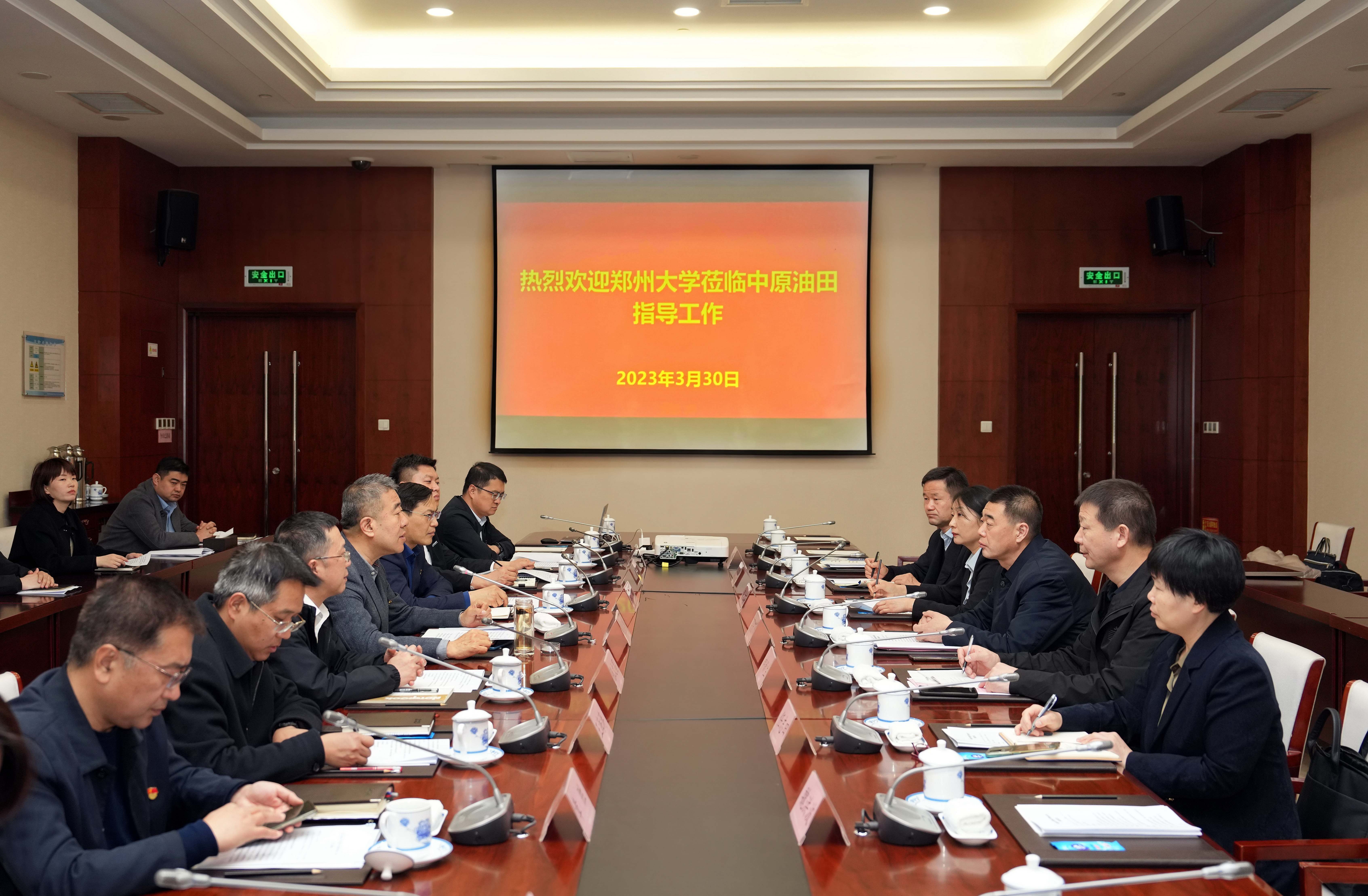 中原油田勘探局有限公司党委常务副书记孙喜新,科技信息部经理、采油工程专业油田首席专家张文昌,物探研究院院长万涛,人力资源管理高级专家章胜及校友代表与吴宏阳一行座谈交流。